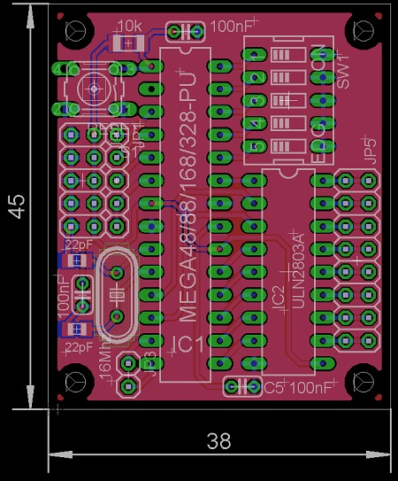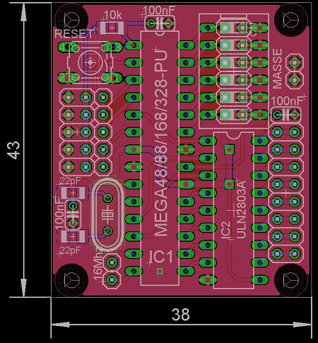 Das Board wurd noch etwas angepasst. Im Bereich des "Mäuseklaviers" (oben rechts) habe ich zus. Bohrungen für eine alternative Stiftleiste eingebracht. Und schwupps, schon habe ich die Platine für das kommende Funktionsmodul meines Gepards fertig.