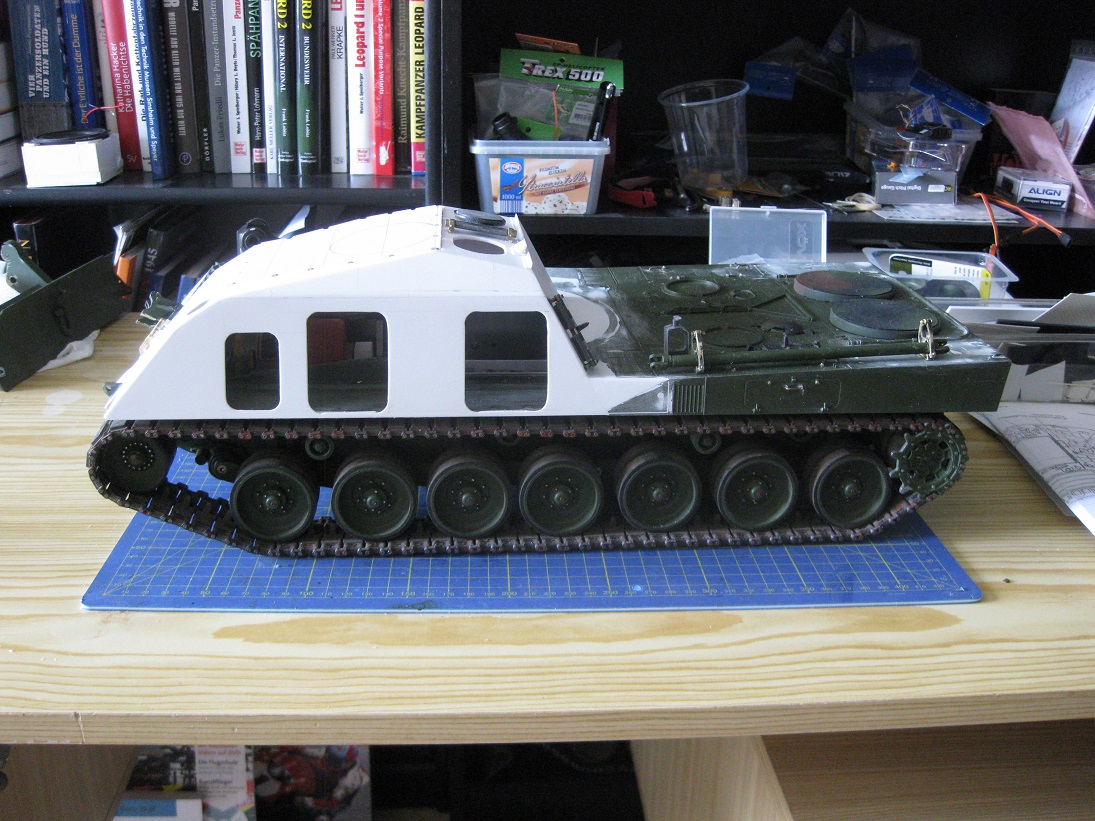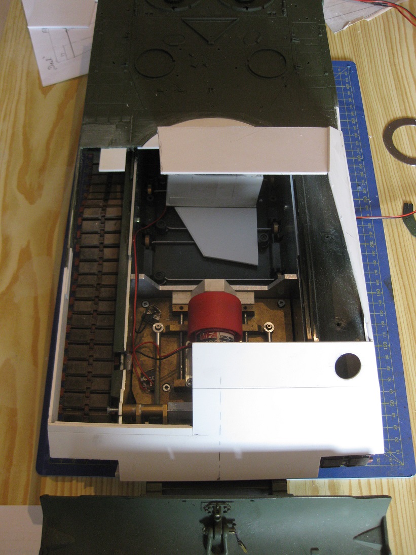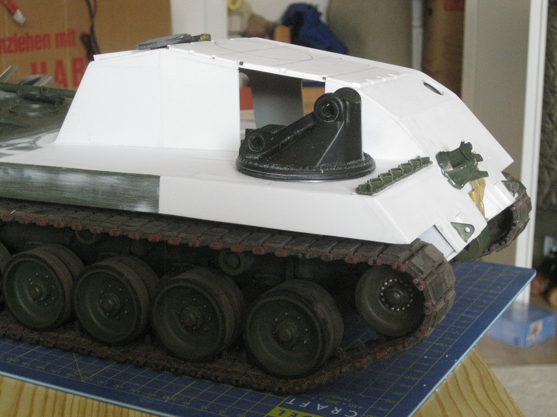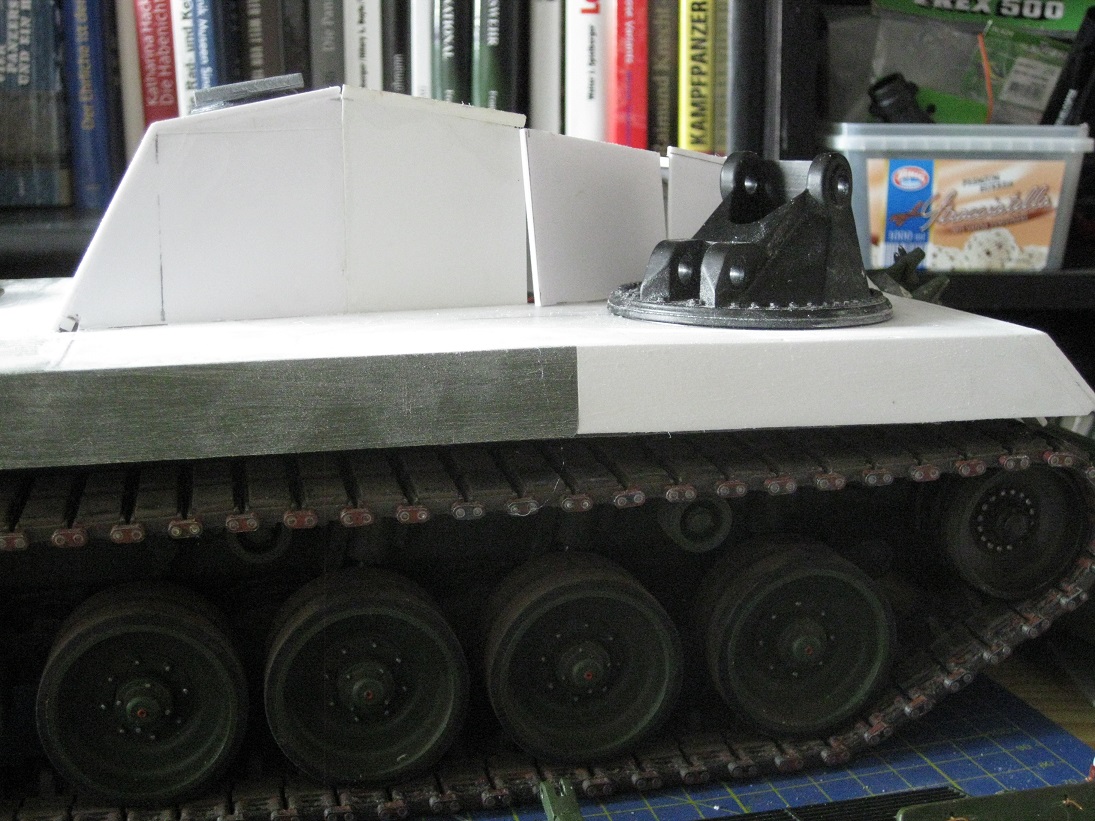 Mit den Bildgrößen hab ich mich irgendwie vertan. Dafür jetzt weitere. Zu sehen der AFV- Kransockel sowie der Antrieb. Da ich die Tamiya Kettenabdeckungen weitgehend weiter nutze ist er auch von unten gut gegen Dreck geschützt. Das sieht vielversprechend aus.