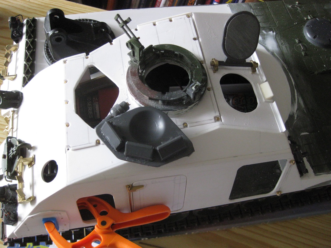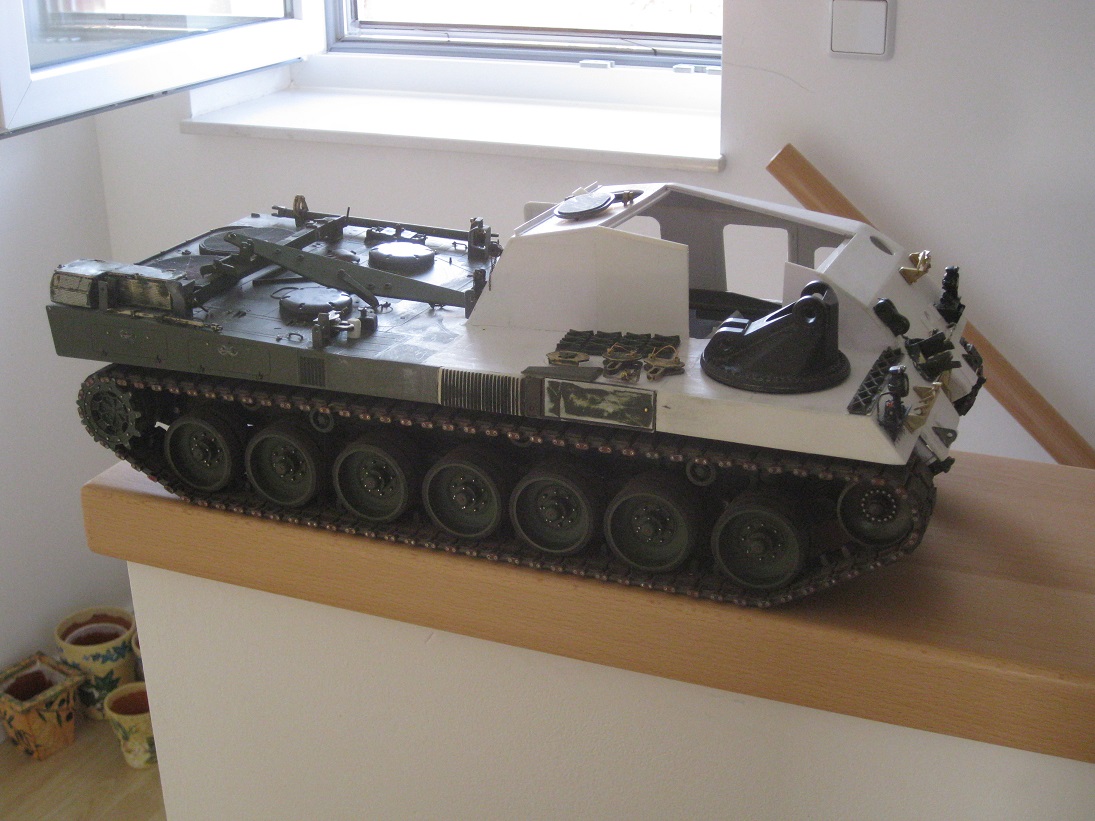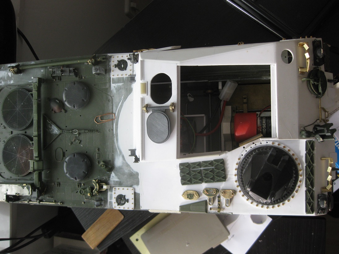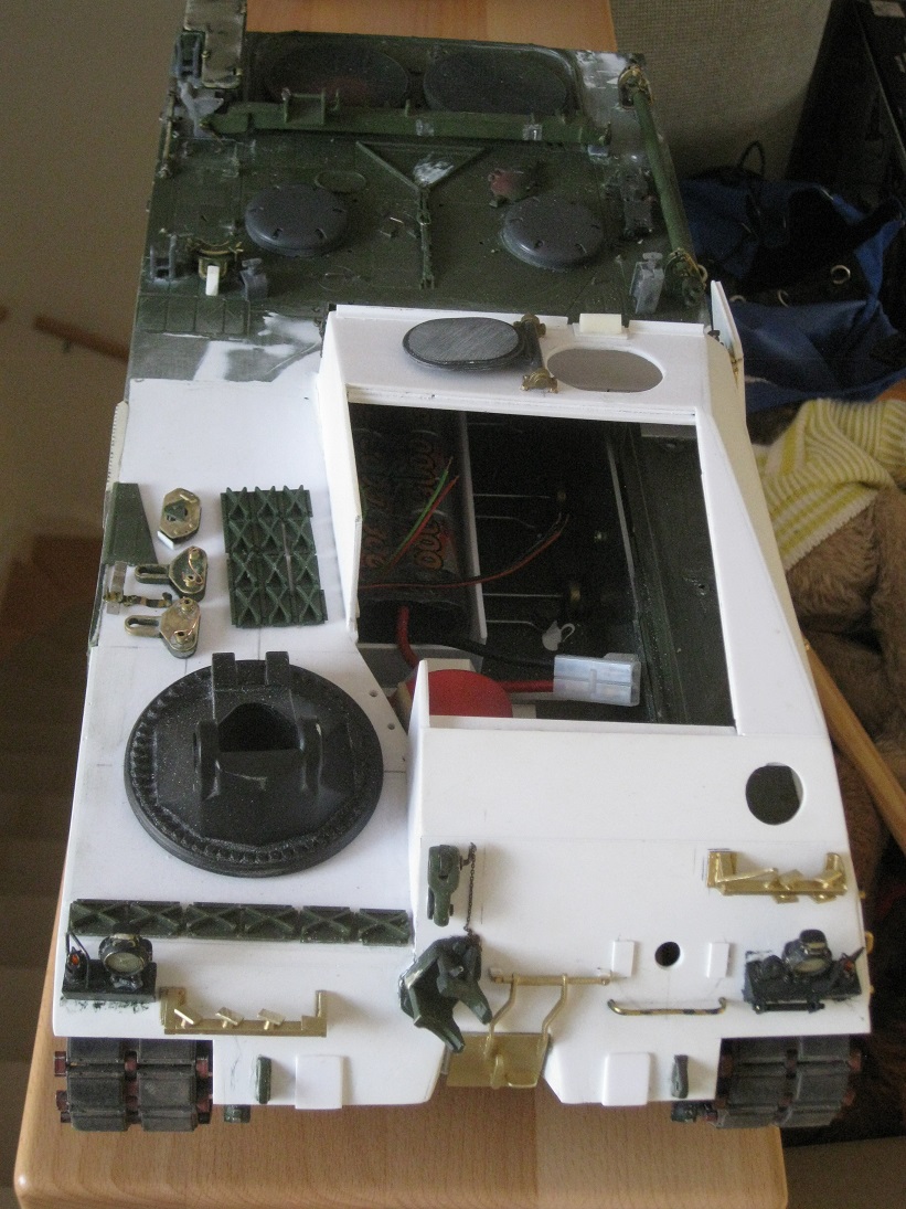 Zum Modell: es ging etwas weiter, siehe Bilder. Die Unterwanne Tamiya wurde von mir vorn übrigens ca. 8mm verlängert (Wannenschräge) da hier Fragen kamen.
