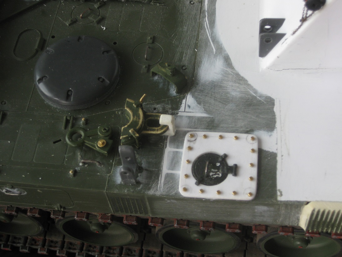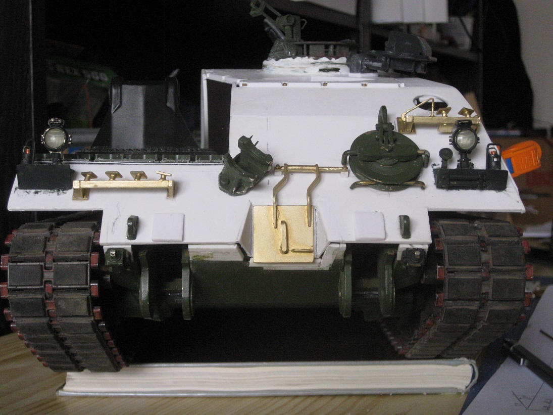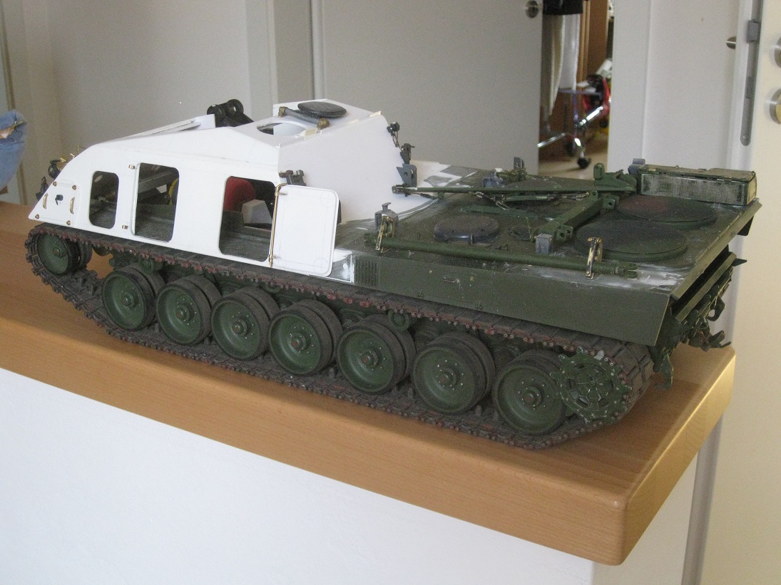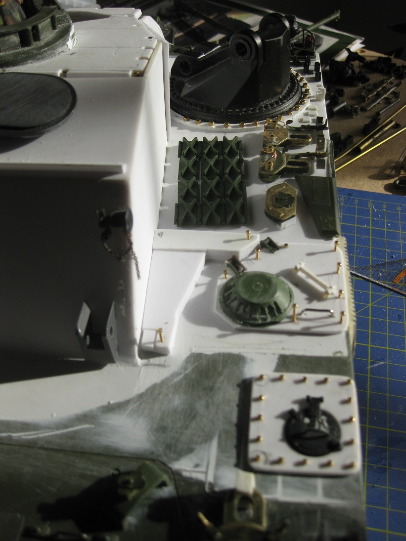 Zum Modell: es ging etwas weiter, siehe Bilder. Die Unterwanne Tamiya wurde von mir vorn übrigens ca. 8mm verlängert (Wannenschräge) da hier Fragen kamen.