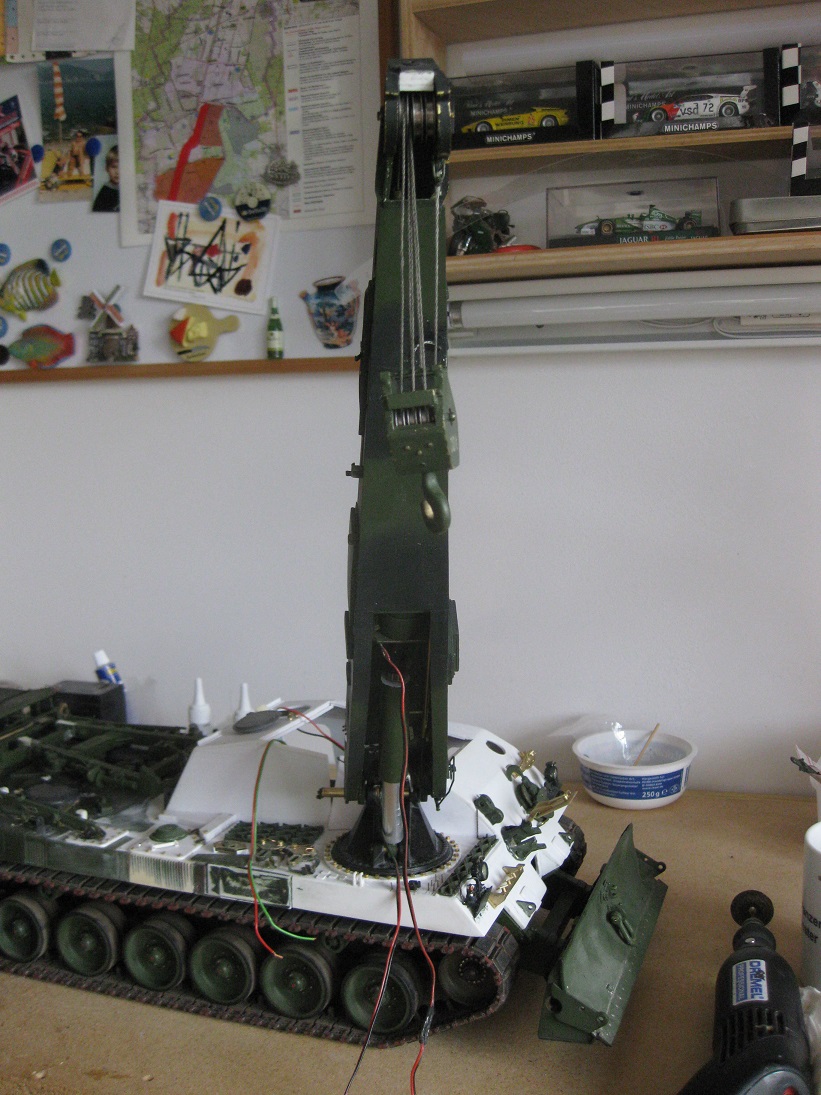 sehr, sehr schöne Detailarbeit. Verfolge Deinen Baubericht schon längere Zeit. Vor allem wenn man selbst schon solch ein Projekt umgesetzt hat, weiß man wie viel Arbeit und Zeit investiert werden muss, bevor die ersten Meter im Gelände gefahren werden können. Mit der Auswahl der AfV-Komponenten wirst Du Deine Freude haben. Ich bewege meine Bergepanzer schon einige Jahre im Gelände und hatte bisher kaum Probleme. Die einzige Schwachstelle ist der Drehkranz. Bei einem Gewicht von 1,5 kg am Haken (schafft die Kranwinde und der Hebemechanismus vom Kranarm) muss man von Zeit zu Zeit das Lager nach justieren.