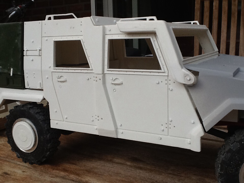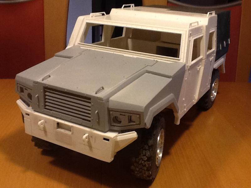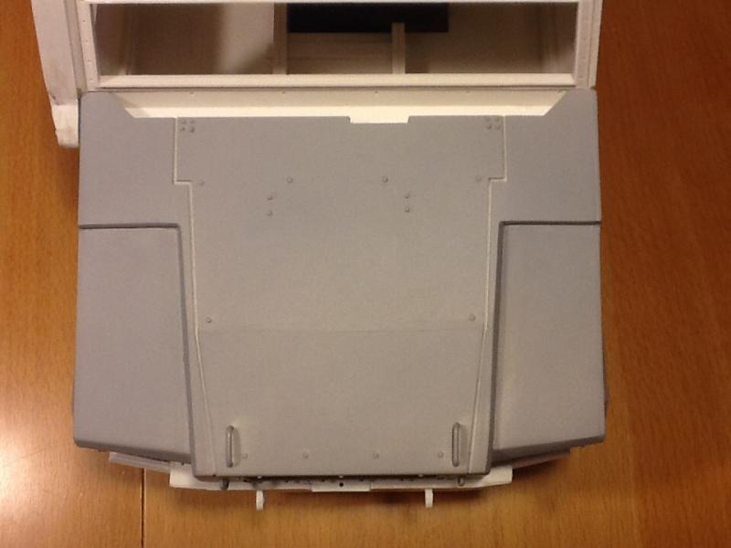 Vorne an der Haube ist eine "Nase" zum einhängen und die Halterung für die Scheinwerfer und Blinker Komponenten.