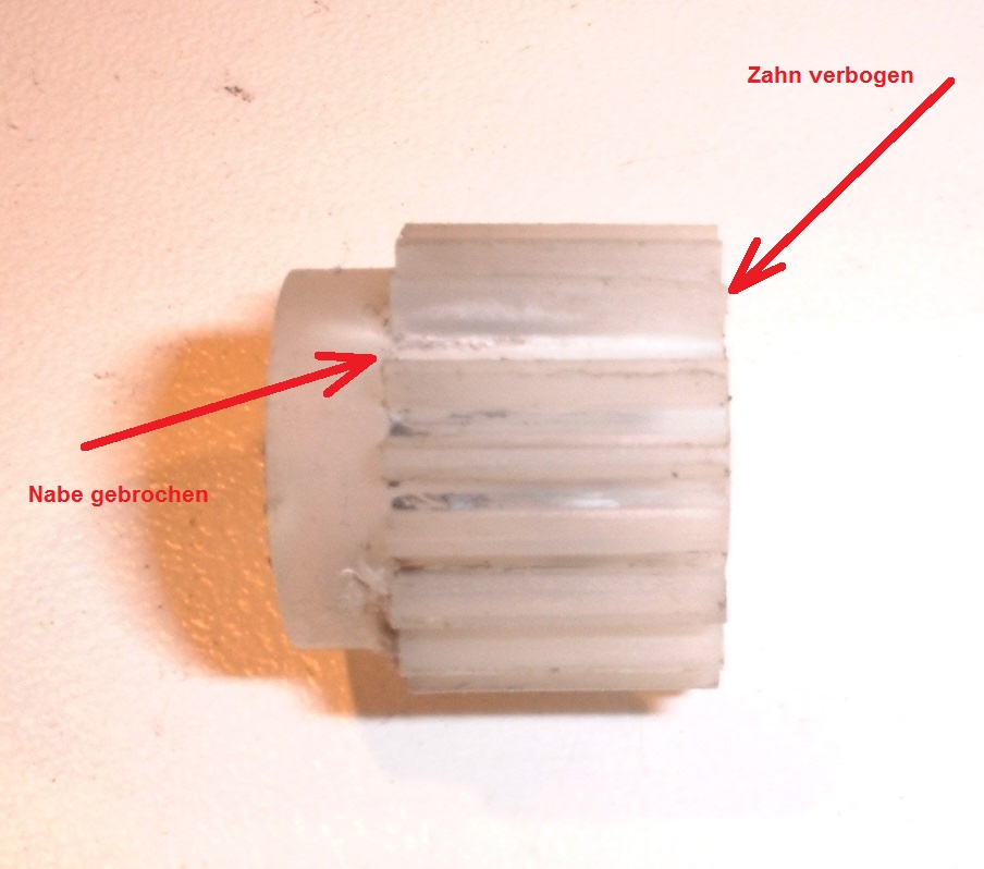 Aufgefallen ist mir anfänglich nur der etwas verbogene Zahn am Zahnrad.