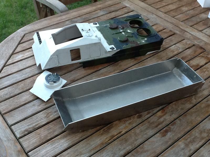 Zur Zeit befasse ich mich mit der Wanne. Diese habe ich aus zwei Millimeter starkem Aluminium gekantet und am