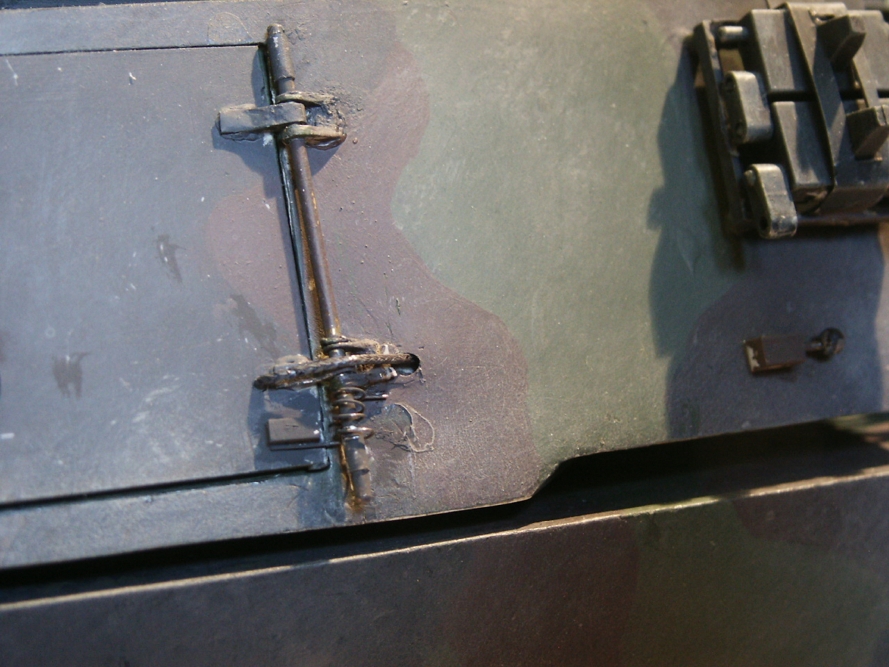 Ein kleiner federbelasteter Hebel hält die Erdsporne in Fahrstellung....bei Bedarf drückt ein Servo den Hebel nach oben und die Sporne fallen runter.....nun gut,oben Einrasten muss man dann manuell.