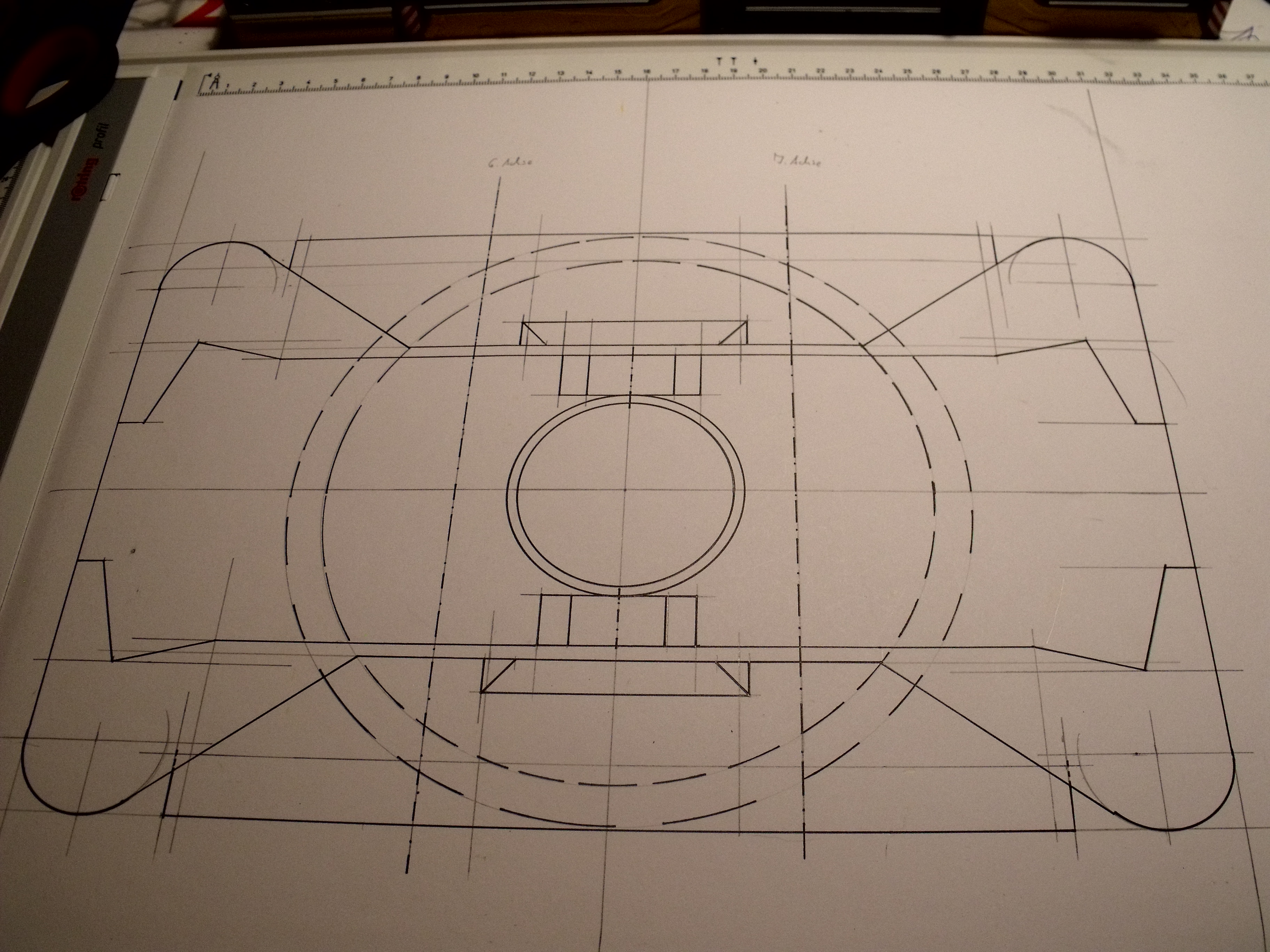 Am Zeichenbrett hab ich bereits etwa die Hälfte, genauer gesagt bis hinter die 5. Achse geschafft.