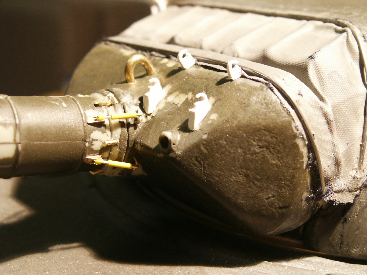 Aussen wurde noch der Zielscheinwerfer mit Halterung angebaut und diverse Kleinteile an der Hauptwaffe wurden ebenfalls entfernt und neu gebaut.