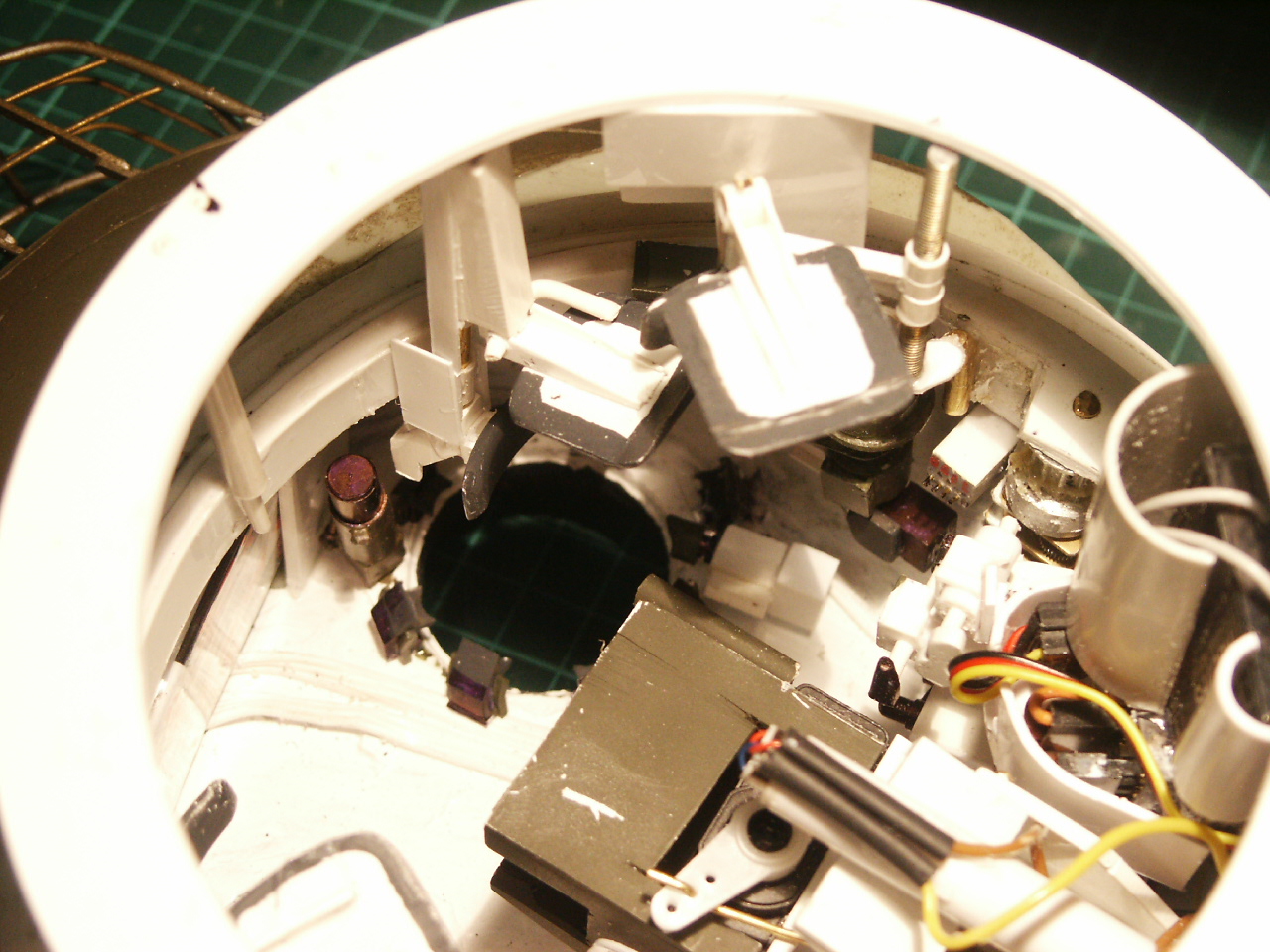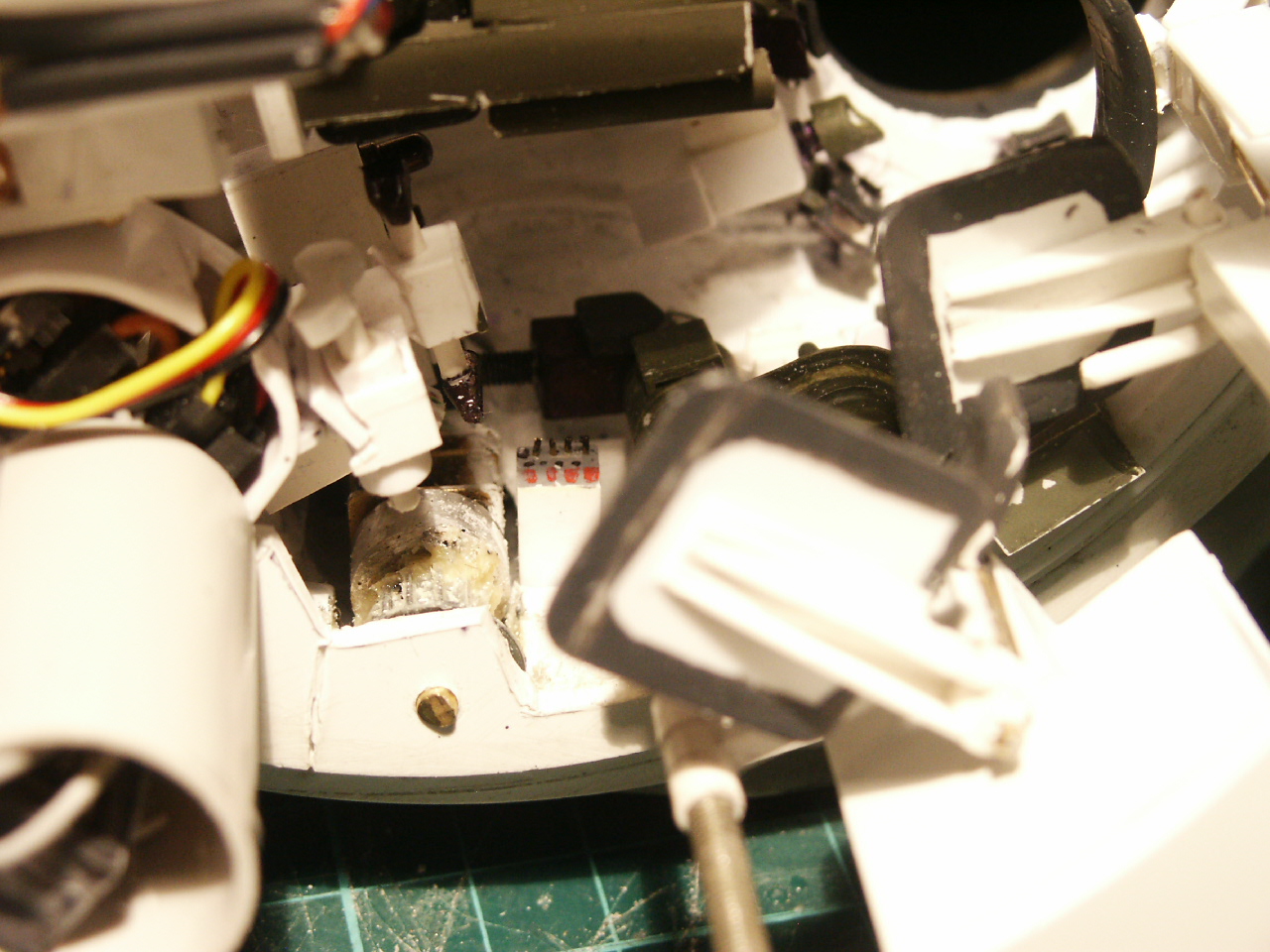 Der Impuls für den Rohrrückzug wird von einem Beier Soundmodul geliefer und über eine Schleifkontkt in den Turm übertragen.,somit ist der Turm komplett autak.