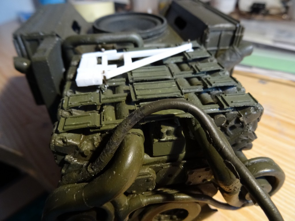Ich habe mal an der Oberseite des Motor´s weitergemacht und die Trittbleche und den Haltebügel für die ganzen Züge und den Halter des Wasserbehälter´s gemacht.
