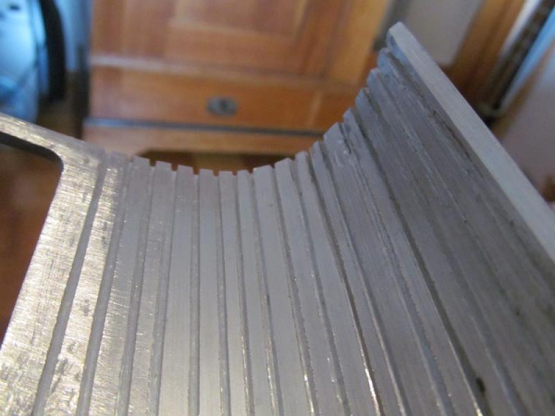 So sieht das 3mm Alublech von Innen aus. Winkelschleifer mit einer sehr dünnen Trennscheibe und einer ruhigen Hand.