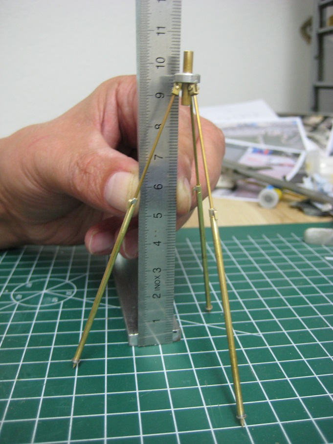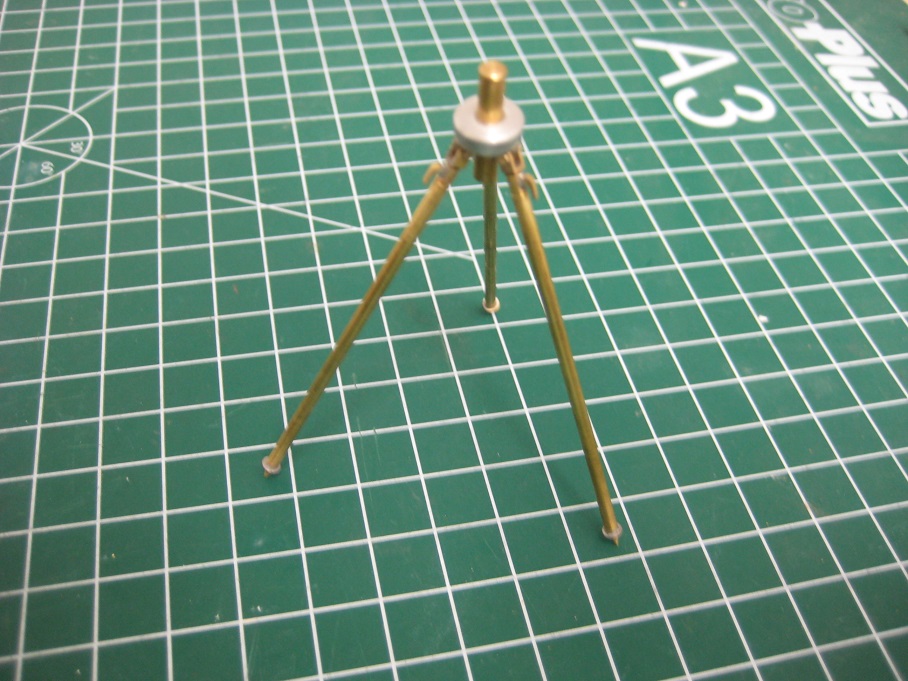 Weiter mit der Halterung des Stativs. Ich finde sie ist etwas groß geworden. Hätte wohl 0,6er oder 0,8er Rund nehmen sollen. Dann hätte ich es sicher etwas filigraner hinbekommen. Es bleibt aber so.