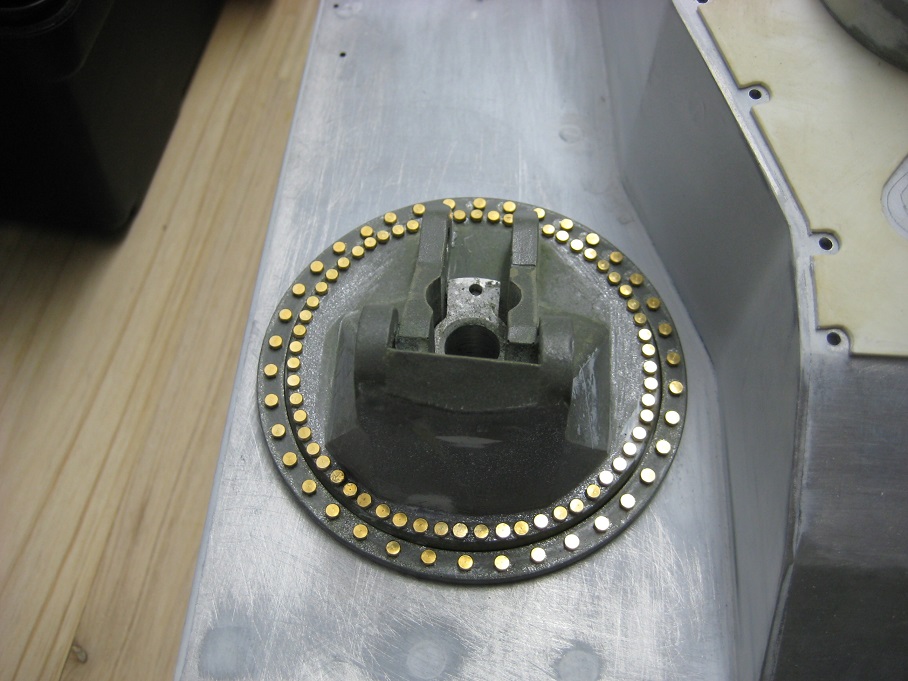 echten Büffel Beilagscheiben unter den Schrauben. Ich habe persönlich lange darüber herumüberlegt, wie ich die Schraubenabstände so genau hinbekommen, denn ich habe mir diesen Ring, der ja von PM aus Resin geliefert wird, aus