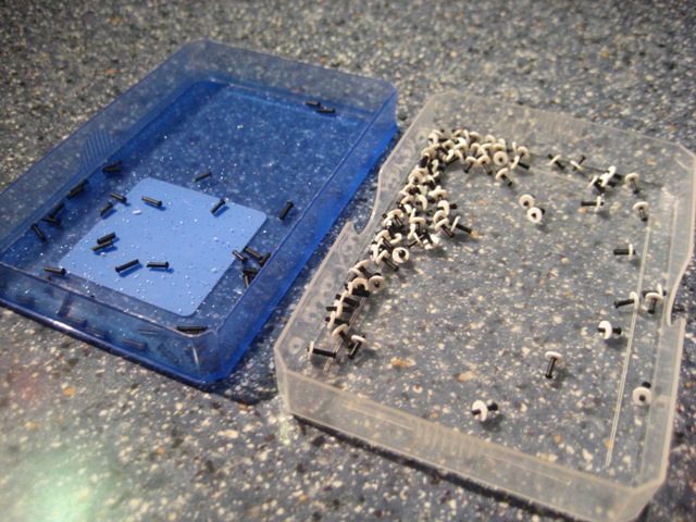 Die Scheibchen wurden dann mit einer Kunststoffniete bespickt.