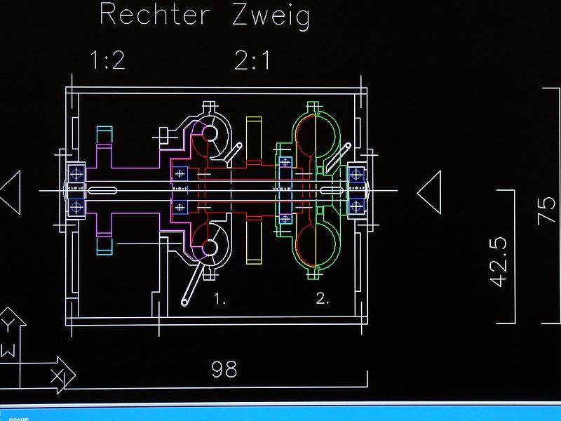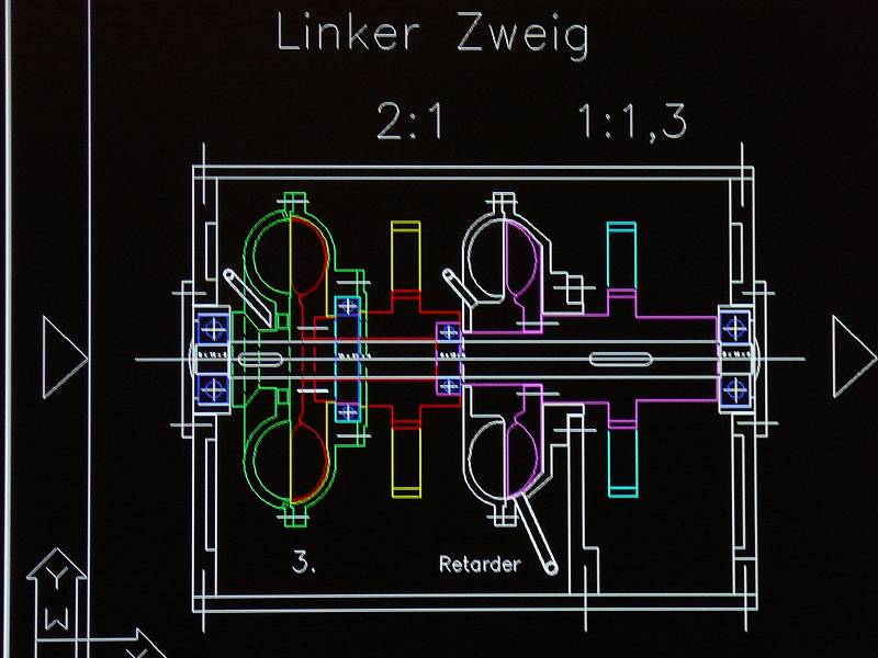 Hoffentlich langweile ich jetzt nicht einige Leser mit technischen Details, aber ich für meinen Teil halte die Funktionsbeschreibung eines relativ hochtechnischen Gerätes für unverzichtbar. Allein durch die Details wird das Besondere dieses Projektes sichtbar. Dass bestimmte \"Features\" ( mir fehlt tatsächlich ein gut passendes Wort in deutsch...) in Großgeräten vorhanden sind, ist ja fast schon normal - aber in einem Modell-Getriebe mit der gleichen Komplexität und Funktion aufzuwarten, ist schon wieder erstaunlich.