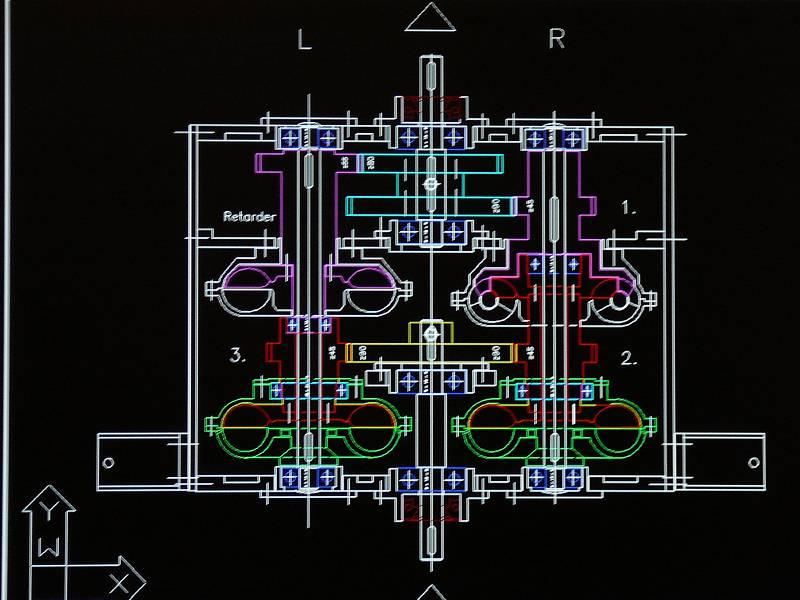 Die Fa. Voith hat einen guten Ruf, was Anlagen und Getriebe dieser Art betrifft. Die Ingenieure dort haben wahrscheinlich schon alle möglichen Varianten solcher Fluid-Kupplungen und -Getriebe entworfen. Natürlich bin ich mit meiner Vorstellung auch in deren Unterlagen fündig geworden. So wundert es sicher nicht, wenn ich mich in meinem Entwurf für den geplanten Modellantrieb im wesentlichen an ein von Voith gebautes Diesel-Lokomotiv-Getriebe anlehne.