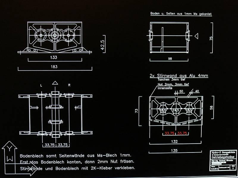 Langer Rede gar kein Sinn: nach einigen Nächten der Gedankensortierung und Unterlagensuche begann ich, im ersten Schritt - wie immer - zu zeichnen. Bei dieser Konstruktionsarbeit wird schon vieles konkreter und es stellt sich eventuell auch schnell heraus, in wie weit die Pläne und Vorstellungen zu einem Projekt wirklich umsetzbar sind oder auch nicht. Für \"Nichtzeichner\" sei gesagt, das ist also nicht etwa ein umständlicher Baubeginn sondern für mich eine klärende Notwendigkeit und außerdem eine zusätzlich erfreuliche Beschäftigung mit dem Projekt vor dem Bau.
