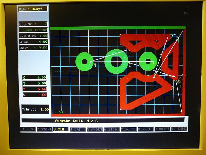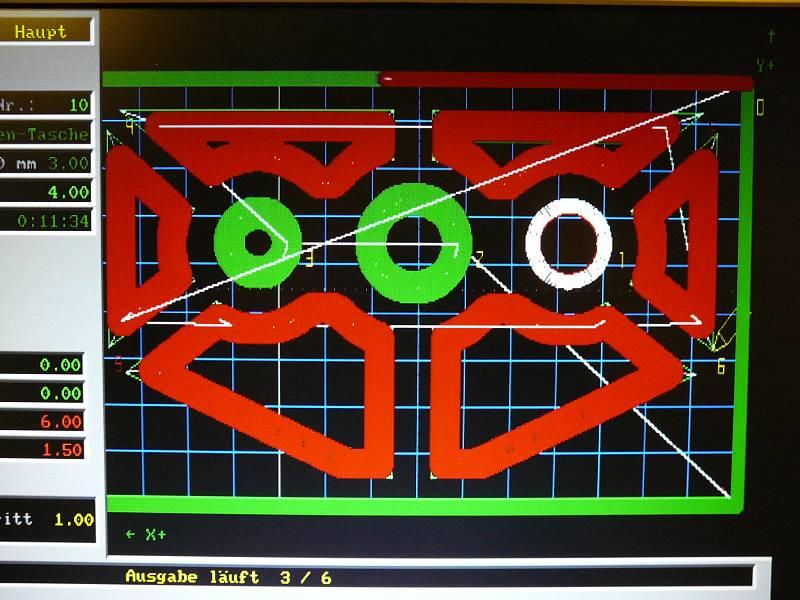 Und hier gab es Probleme - ich habe es schon angedeutet : die seltene Nutzung der nicht ganz einfachen DOS-Software an meiner WaBeCo-CNC-Fräse hat den Wiedereinstieg recht hart werden lassen. Es hat mich einige Stunden der Wiederholung und des Nachlesens gekostet, aber schließlich hat sie klein beigegeben.