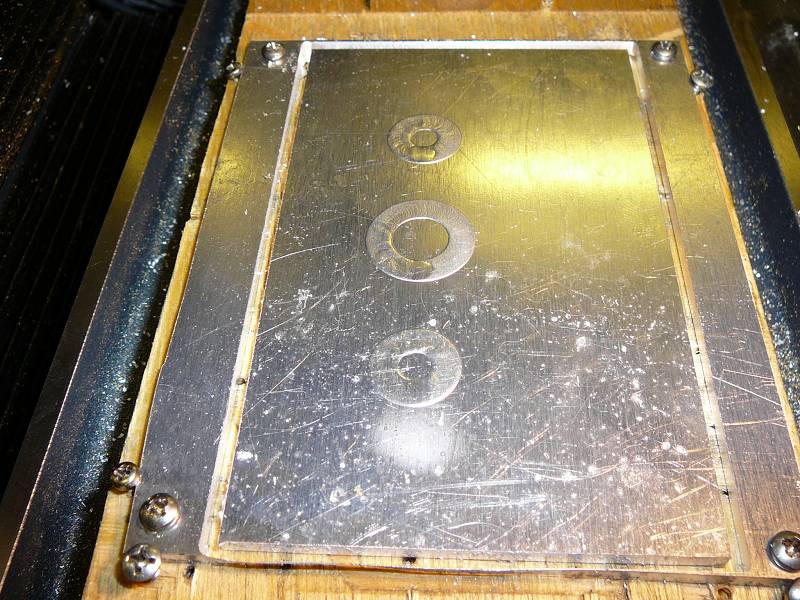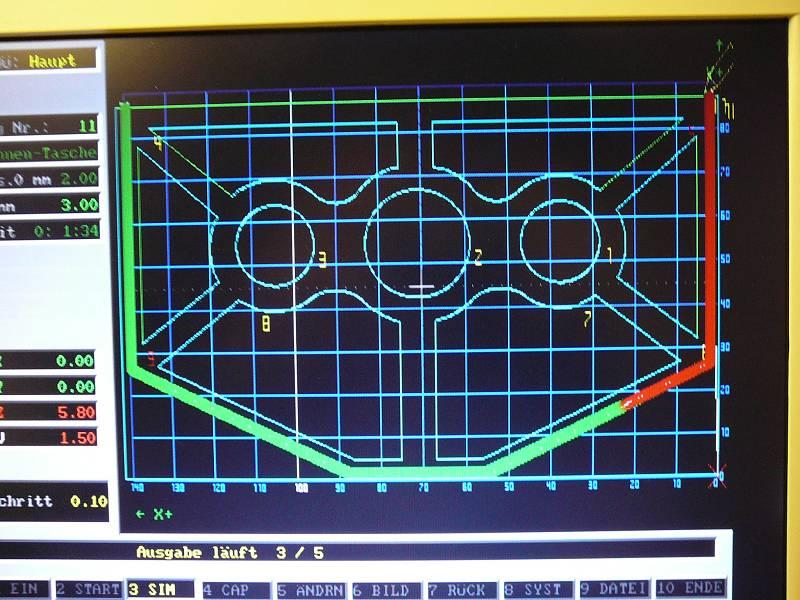 Zu den kleinen Macken des PC-Dreh-Fräsen-Plus-Programms gehört es nämlich, während des Programmierens gelegentlich einige Einträge unbemerkt zu vertauschen oder auf die ehemaligen Vorgaben zurückzustellen - also, ohne häufige Überprüfung geht da gar nichts. Und das kostet immer einen kompletten Durchlauf an Zeit. So kommt es dann auch zu etlichen Stunden Beschäftigung, nur um z.B. endlich diese Alubleche zu fräsen.