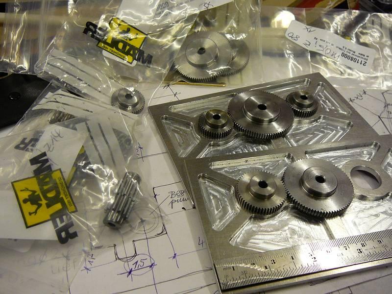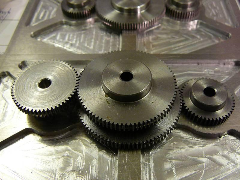 Ich kann mir mit Zahnrädern bei meinem Projekt eigentlich gut selbst helfen - notfalls kann ich mir auch die benötigten Zahnräder ( z.Zt. mit dem Modul 0,5 ) selbst herstellen. Das ist aber eine langdauernde Angelegenheit auf der Fräse und ausgesprochen präzise muß man auch noch dabei arbeiten, sonst wird das Ergebnis unbefriedigend. Ausprobiert habe ich das natürlich schon für untergeordnete Zwecke und dabei erkannte ich: das Selbermachen ist doch mehr für einen \"echten Notfall\" gedacht.