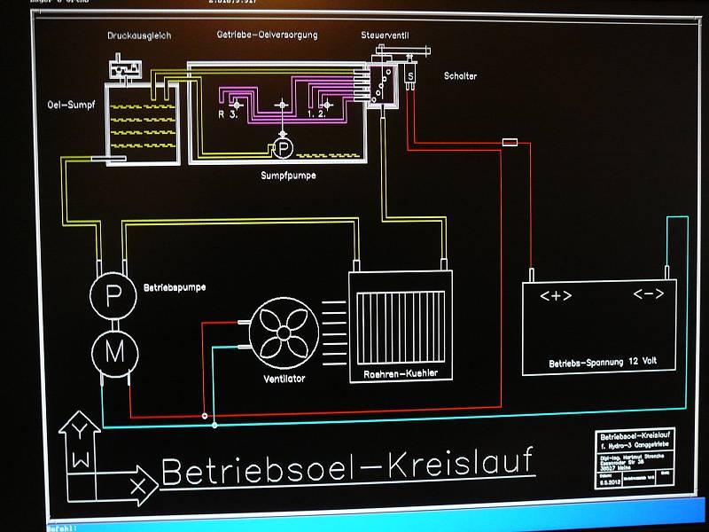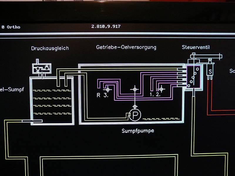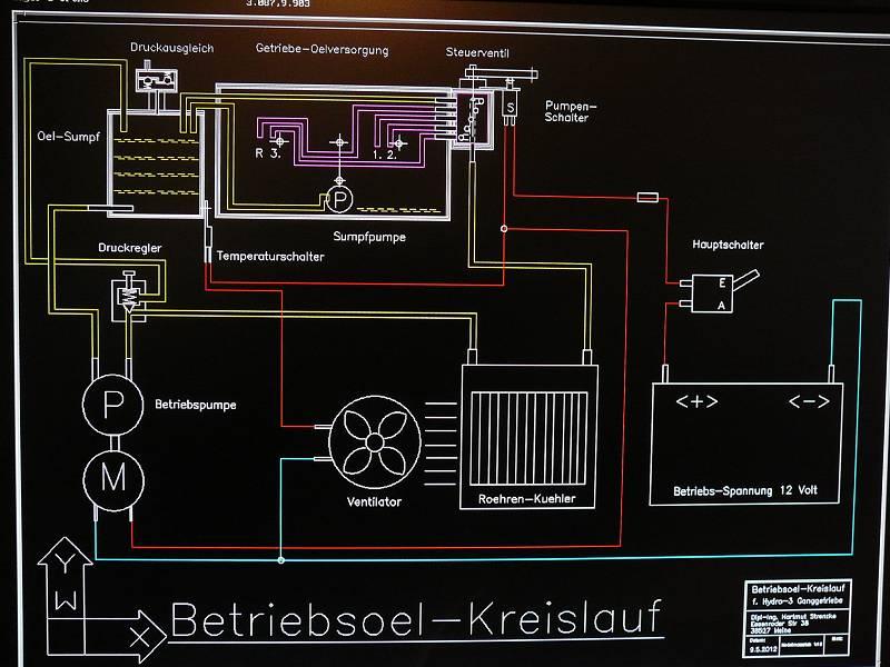 Ich denke, wir fangen am besten mal mit einem wichtigen Teilstück des Planes an, das sind die Verhältnisse um die Betriebs-Öl-Verteilung innerhalb und um das Getriebe-Gehäuse herum.