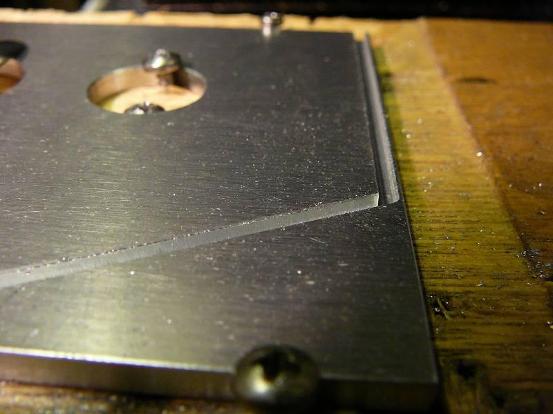 Hier noch eine Nahaufnahme der 2 x 2 mm-Nut am Plattenrand - damit war ich zufrieden. Genau so werde ich heute noch die zweite Platte fräsen.