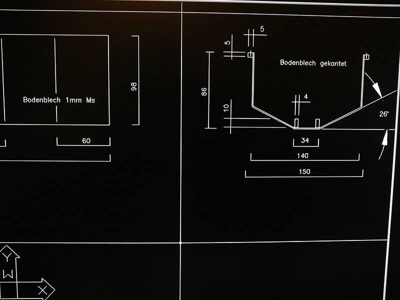Ich bin mir noch nicht sicher, ob ich die 12 Erleichterungs-Nuten ( 3mm tief ) nach innen oder nach außen montieren soll. Beides hat seine Vor- und Nachteile. Die entsehenden Rippen versteifen das Blech, fangen auf der Oberseite aber auch den Schmutz auf, der damit schwerer zu beseitigen ist. Innenliegend wäre das unwichtig, gleichzeitig ist aber die optische Wirkung der Rippen nur außen zu bemerken. ( Der Mann hat Sorgen... )