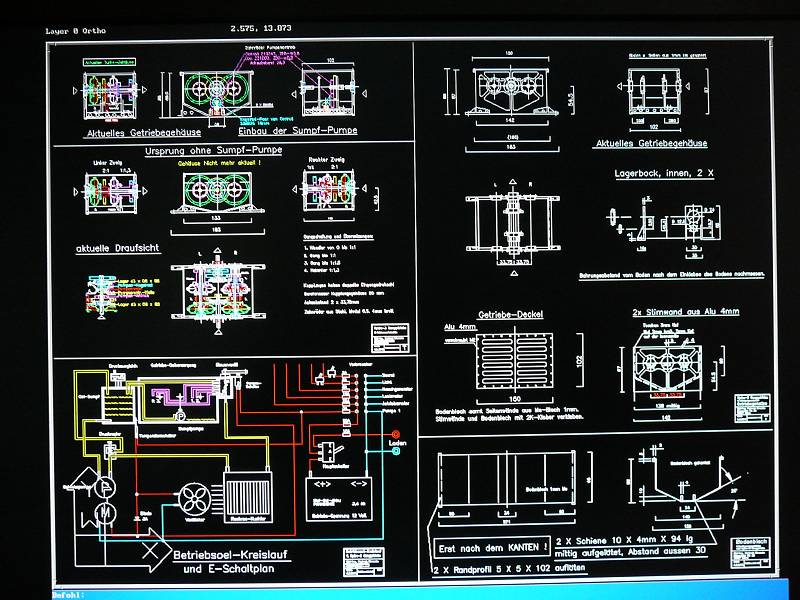 Nun - selber etwas schreiben ist genau das, was ich gerade noch zustande bringe (..., wenn ich die Krücken aus der Hand lege. ) Ich erkannte dann die gute Gelegenheit für eine gründliche Aufarbeitung meiner bereits erstellten Hydro-Getriebe-Zeichnungen. Da hatten sich doch im Laufe der Zeit hier und da kleine Änderungen ergeben, die alle eingepflegt werden mußten.
