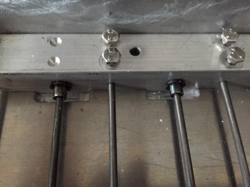 Ich würde in diesem Fall versuchen, diese Buchsen einmal in der Mitte zu schlitzen, damit sie dann den Federdraht besser mit dem Druck der beiden Klemmschrauben einspannen kann.
