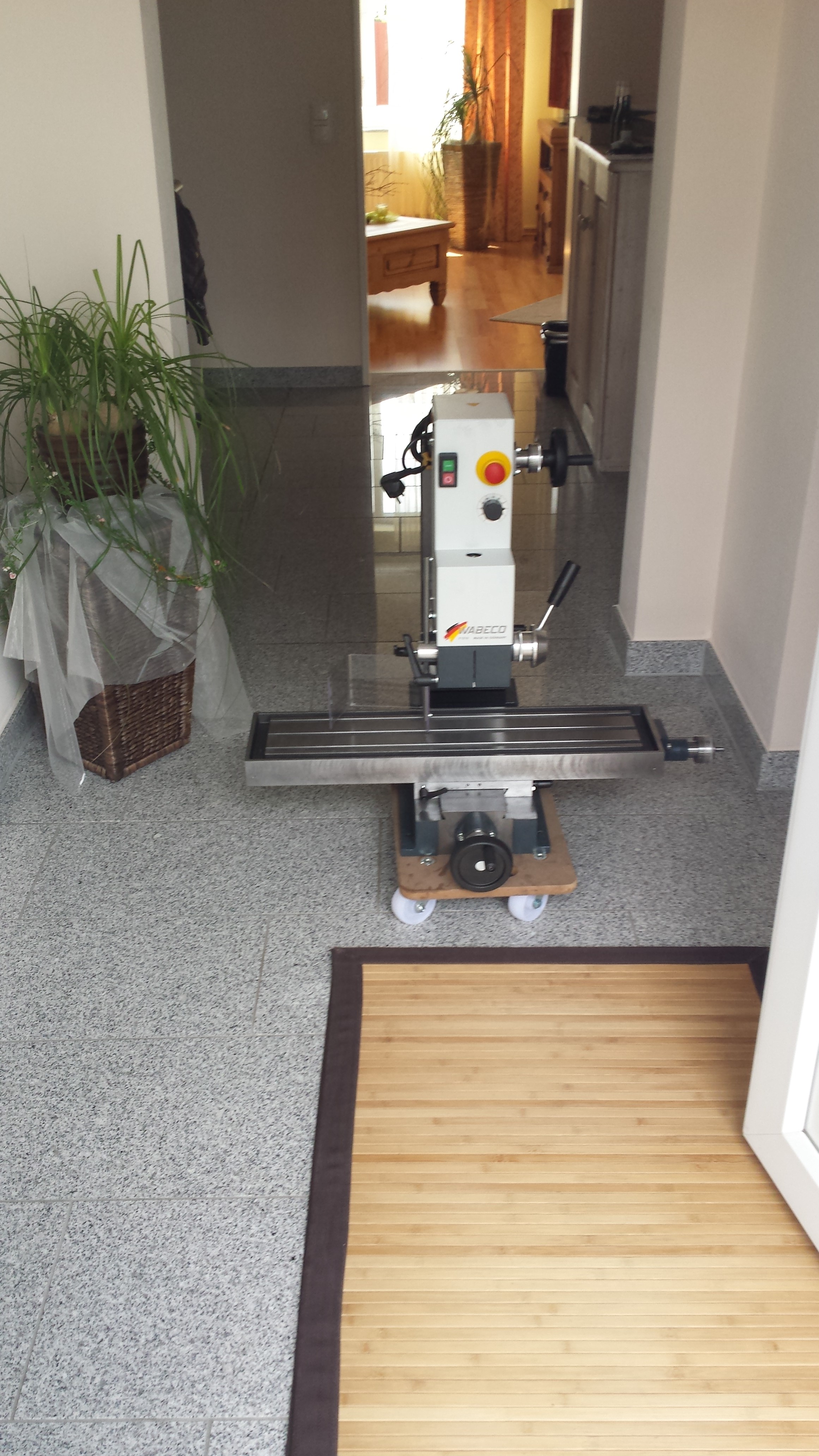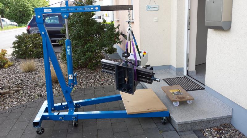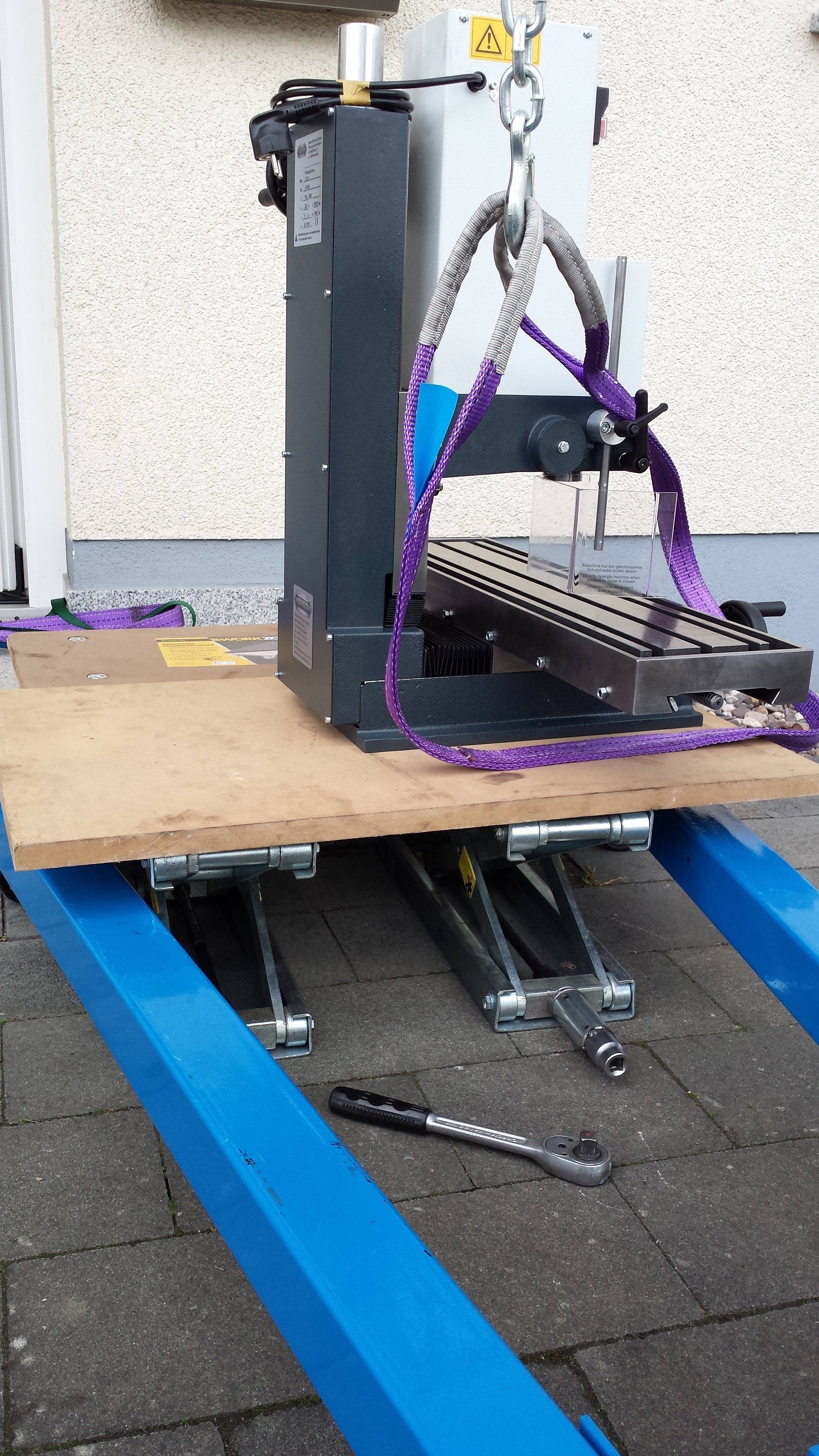 das erinnert mich an den Transport meiner Optimum BF 30 Vario durchs Fenster in den Keller! Das Ding wiegt 265 kg und mußte in 3 Teile zerlegt werden, damit ich es überhaupt hantieren konnte. Die Rampe für meine Panzer war da eine große Hilfe, aber dann kam der Zusammenbau! 2 Mann mußten den fast 90 kg schweren Kopf vorgebeugt frei gegen die Z-Säule halten, und ich lag mit dem Kopf drunter (!!) und montierte innen die Zentralbefestigung, die nur von unten zugänglich ist! Das Ganze dauerte zwar nur wenige Sekunden (länger hätten die Jungs auch nicht halten können!), aber so unwohl war mir selten.......