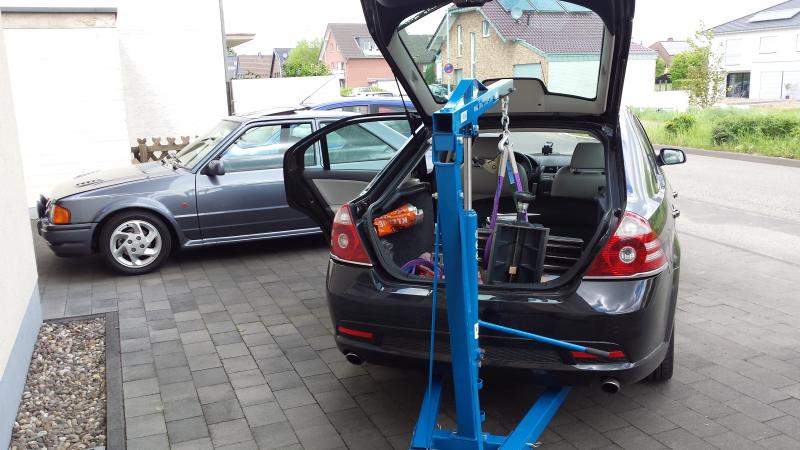 Hab Zuhause einen Motorkran mit dem ich an meinem Hobbyauto Motor und Getriebe gewechselt hab.So krieg ich sie erstmal ohne Anstrengung aus dem Wagen.