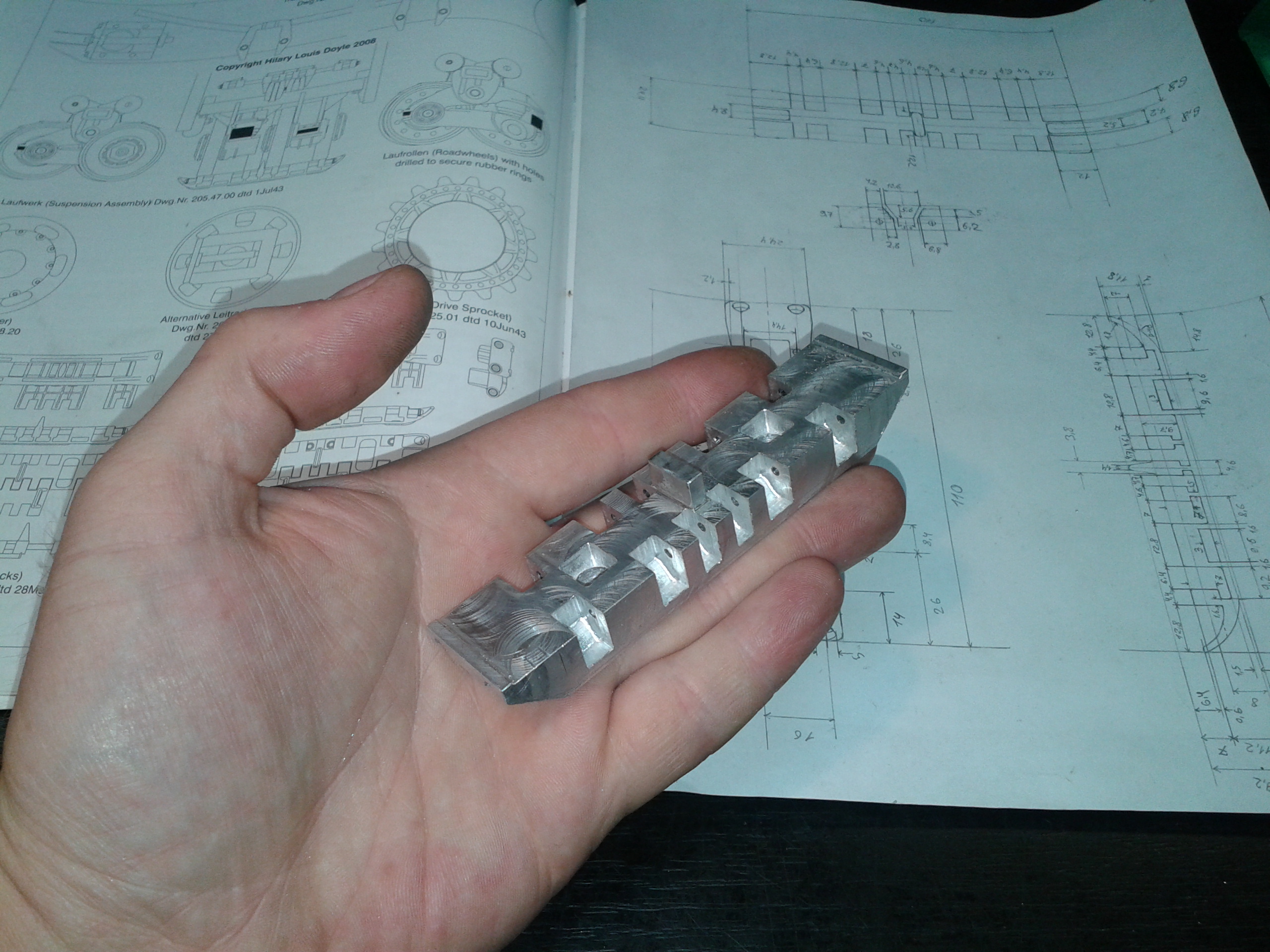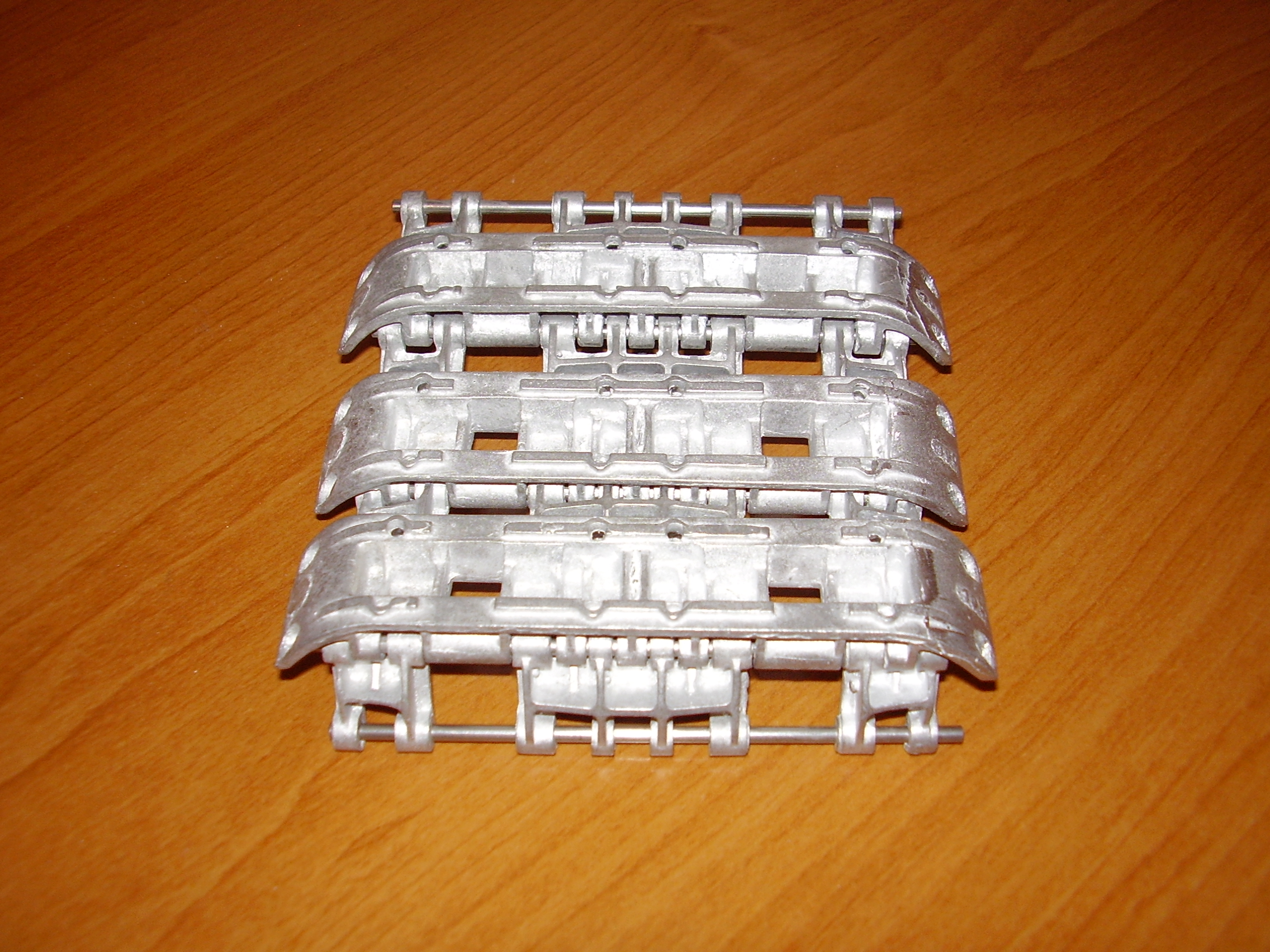 looks very nice! But maybe some parts of the track are a little thin for a so heavy model and may break under heavy loads. Armortek has these problems with her fine detailled 1/6 scale tracks e.g. of Tiger, Panther, Kingtiger. Scale tracks are partially so thin that only steel would fit, like the original. Bigtanks 1/6 scale models use thicker tracks and thinner bolts (both out of scale), which combine a better stability. -- Viele Grüße