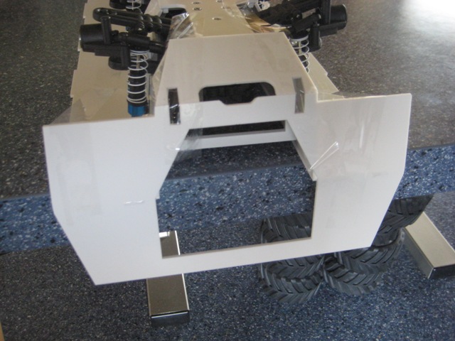 Nun konnte die grob vermessene Bodenplatte vom 1/35 Modell an die eingesetzten Achsen angepasst werden.