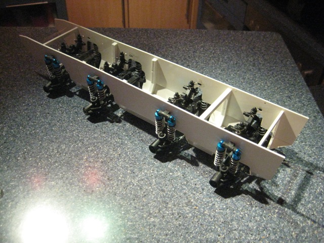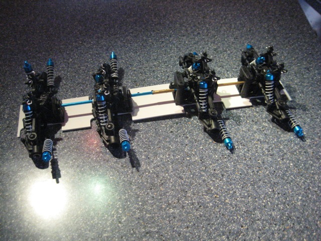 Mein Modell sollte Einzelradaufhängungen bekommen und sollte zudem mit 2 Federdämpfereinheiten je Rad ausgestattet sein.