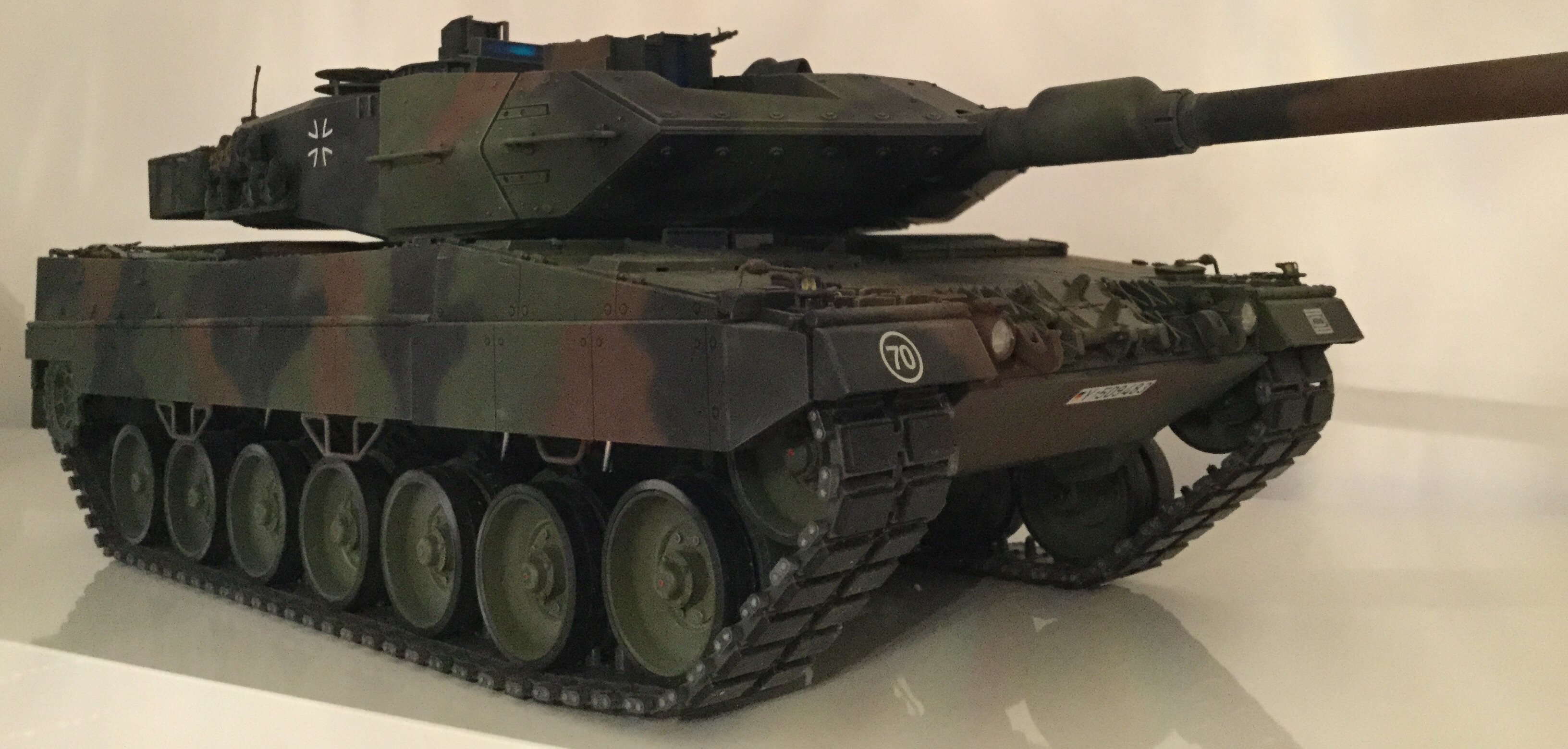 Möchte hier meinen neuen Leopard 2A6 vorstellen. Den Leo habe ich von AFV bestellt und fertigen lassen. Vielen Dank an Tom und das gesamte Team für den wunderschönen Leopard und den super Service. Ausgestattet ist der Leo mit fast allen Zubehörteilen, um ein robustes und deteilgetreues Modell zu bekommen.