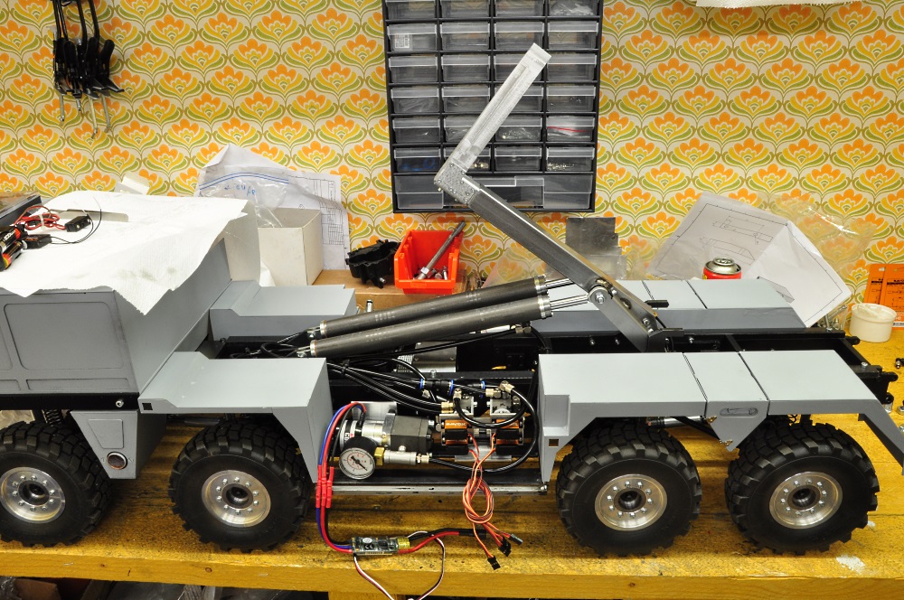 (Aktivierung der Hydraulik über Kippschalter, Pumpen IDLE, der Drucklose Umlauf, Ventil-Verhalten unabhängig von den Steuerknüppeln der Fernsteuerung, Warnblinklicht, Feststellbremse kann(!) beim laden aktiv bleiben etc.)