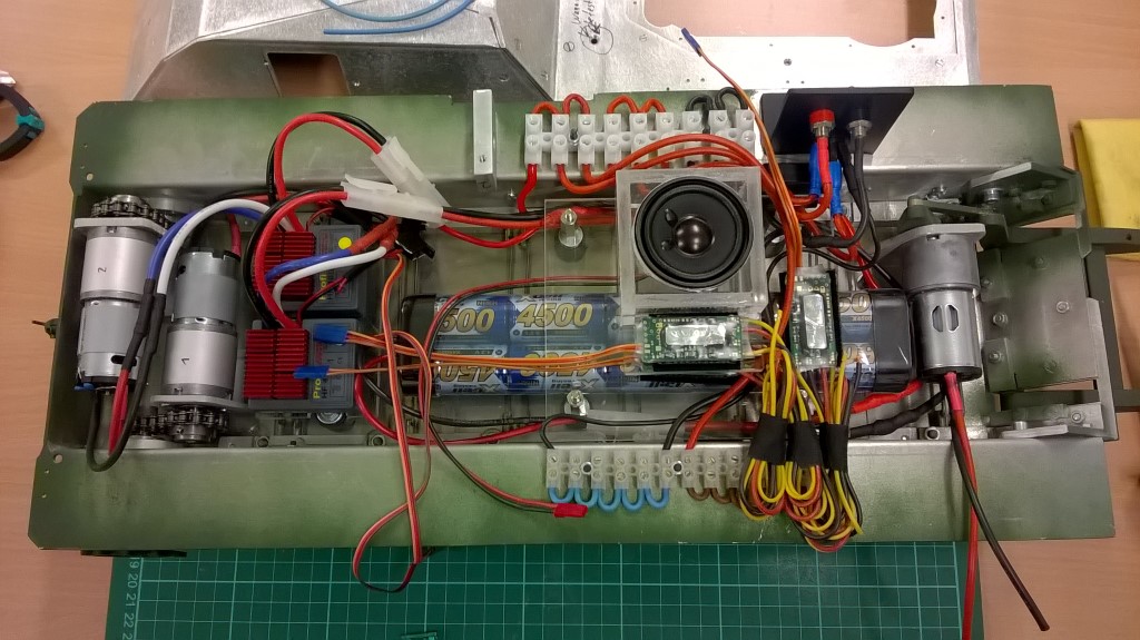 Fahrtenregler, Akku, Lautsprecher und Schalter montiert
