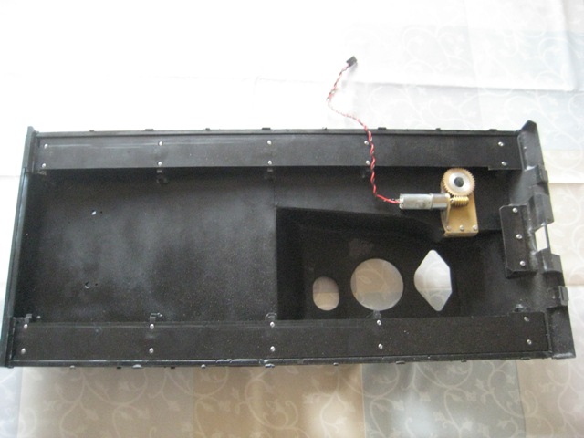 Bei Aufsetzen des Oberteiles kollidierte der Messingwinkel vom Motor mit dem Getriebemotor vom