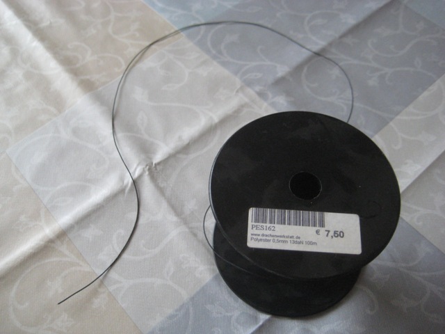 Die im Bausatz enthaltene Schnur, habe ich durch meine bewährte Drachenschnur 0,5 mm ersetzt.
