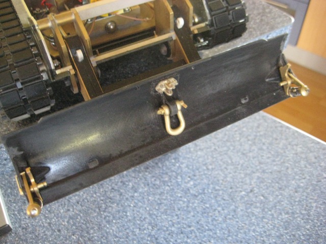 Das stimmt zwar, das es beim Original diese Seilführung nicht gibt, aber leider ist es bei 1:16 nicht anders möglich. Trotz maximal möglichen Gewicht der Flasche und Kugellagern in den Rollen, kann es passieren, das die Flasche beim Auf- und Abfahren so schräg kommt, das die Seile überspringen. Die Seilführung verhindert das gut. Daher die Modifikation gegenüber dem Original.