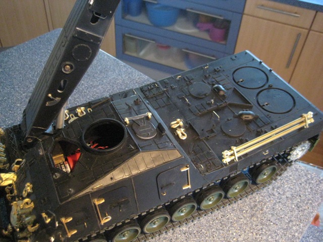 umgerüstet. Zusätzliche Panzerung an der Front und eine "Käfigpanzerung" ab Fahrzeugmitte bis zum Heck. Habe vielleicht noch nen Bild davon.