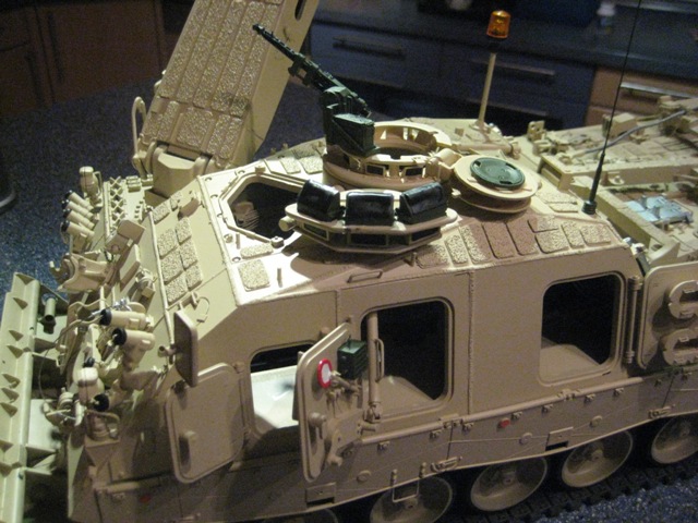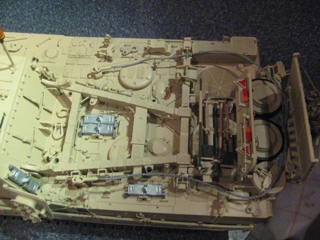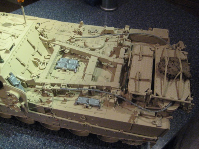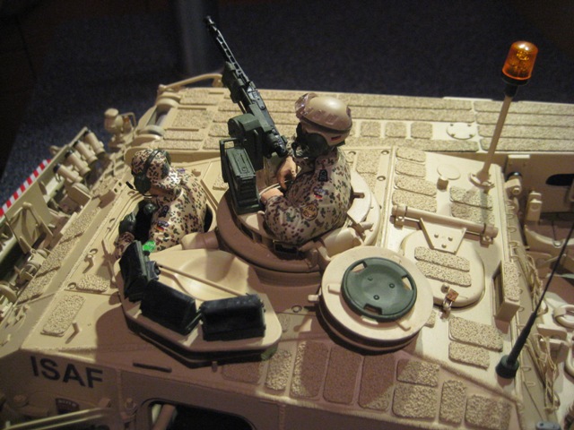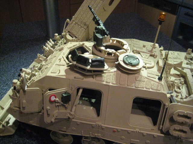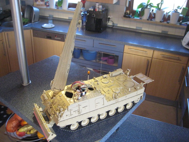 Der Heckträger ist mit der Grundfarbe Sandbeige lackiert und die Werkzeuge in Nato Oliv nachbearbeitet worden, damit das was fürs Auge ist.