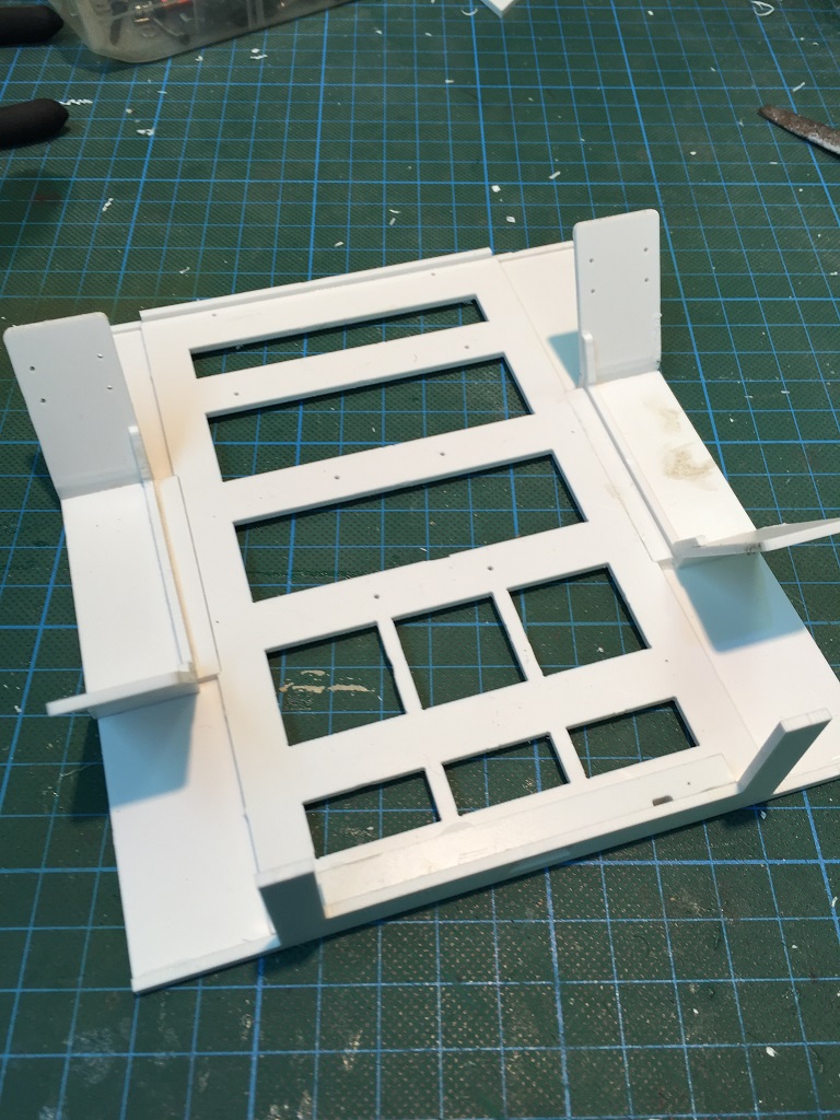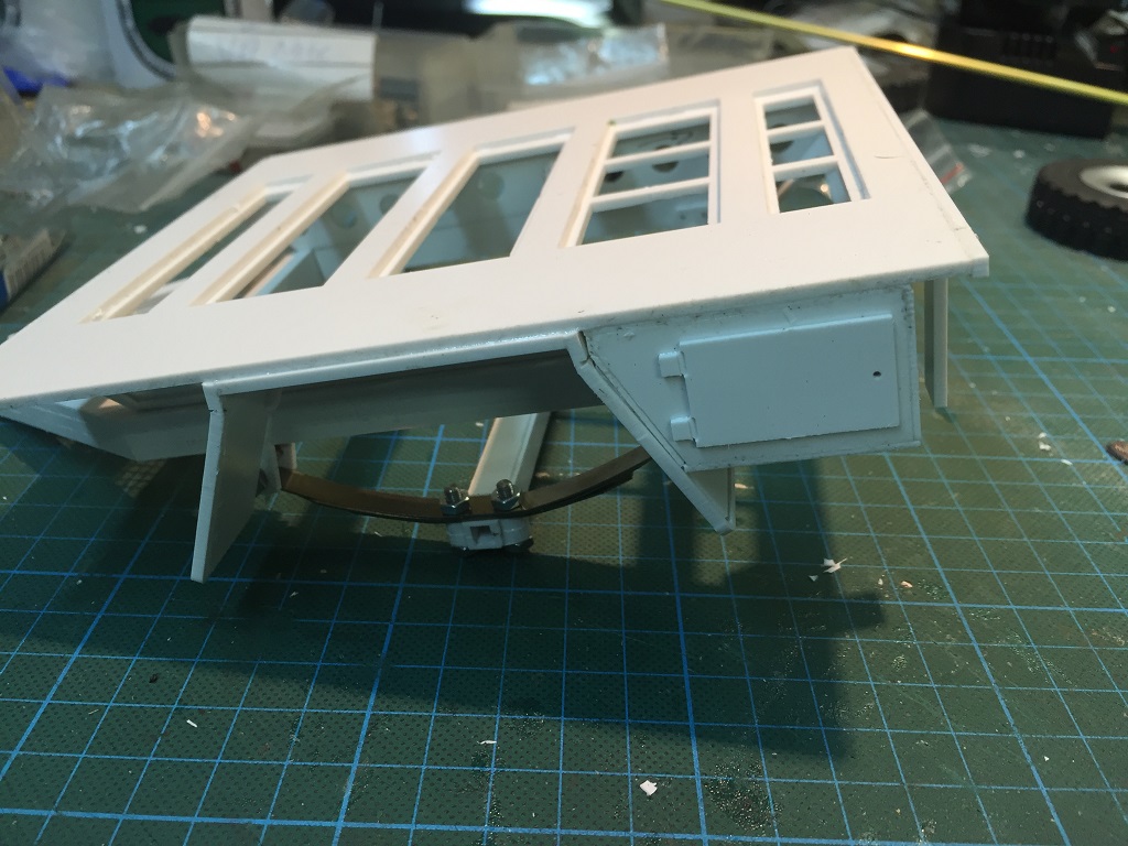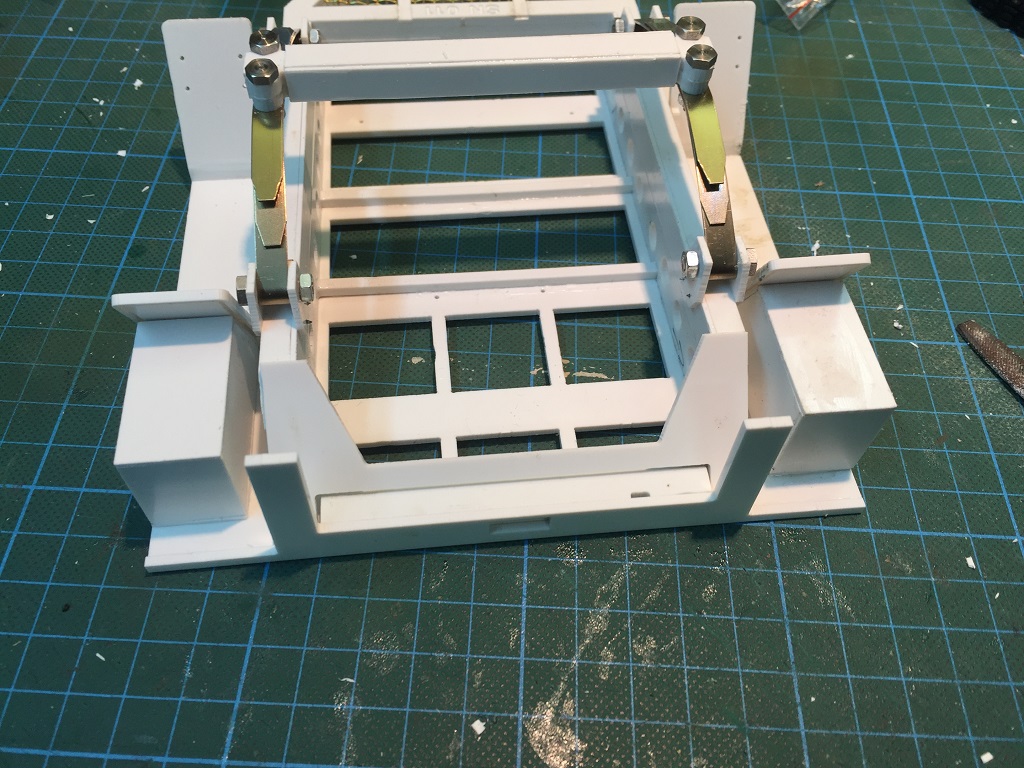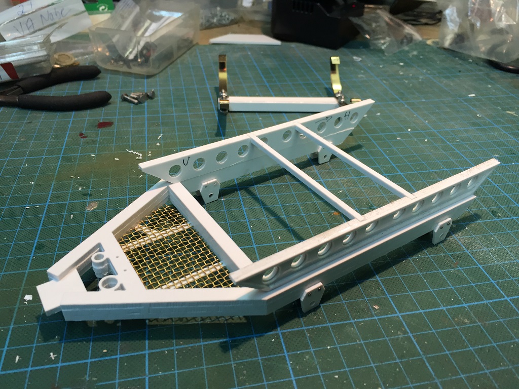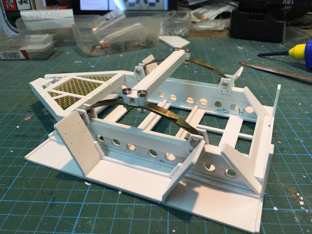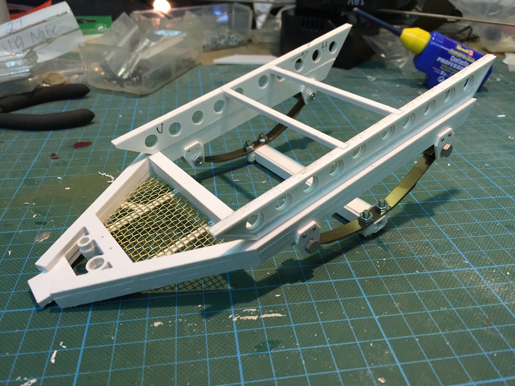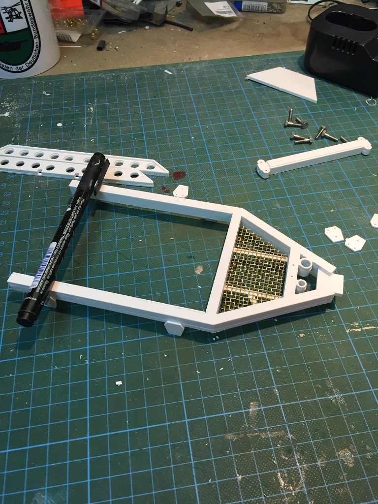Danach ging es an Löcher bohren, die äußeren Aufnahmen der Blattfedern verkleben und noch schnell nen Gitter zuschneiden und einkleben.