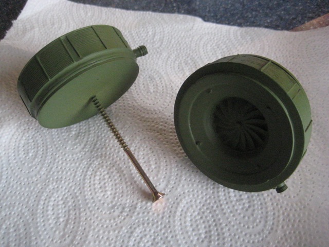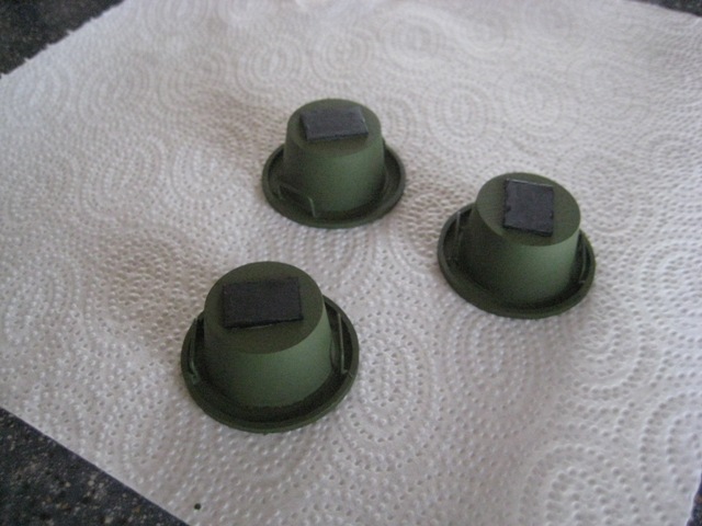 Nun die lackierten Abstell-Tonnen in Nato Oliv XF 76 und flat black.