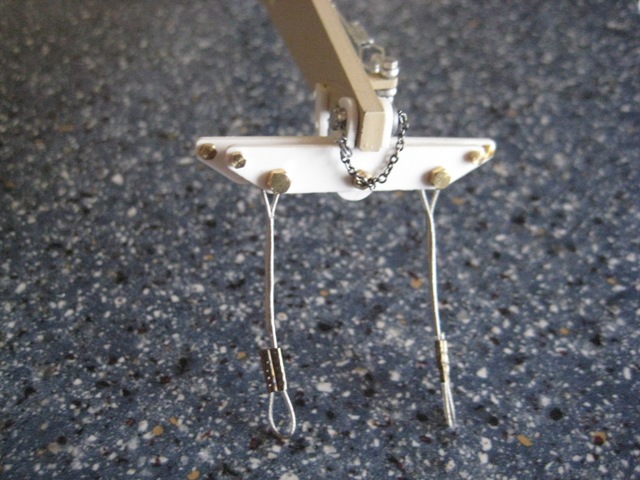 Zur Verarbeitung werden kleine Messingmuttern auf ein Stück 1 mm Rundpoly geschoben und mit