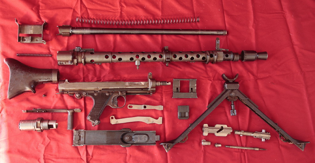 Bei dem Ksp 58 fallen die Munitionsbänder unter dem MG und die Leerhülsen neben ihm.