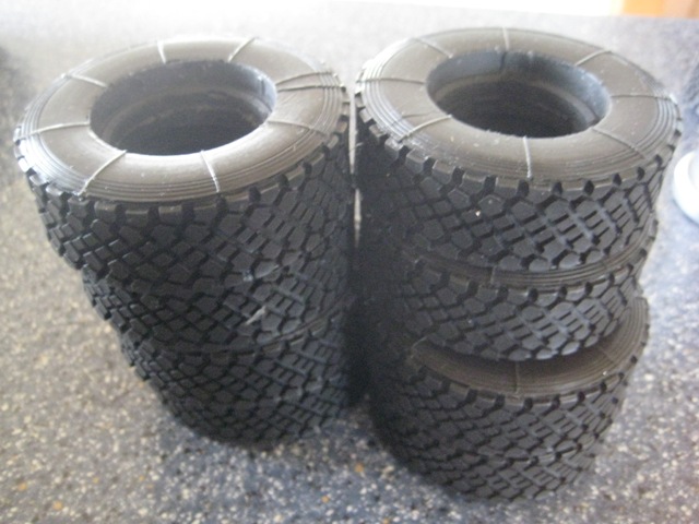 die erste Lieferung der Reifen für die Zugmaschine ist bereits eingetroffen.