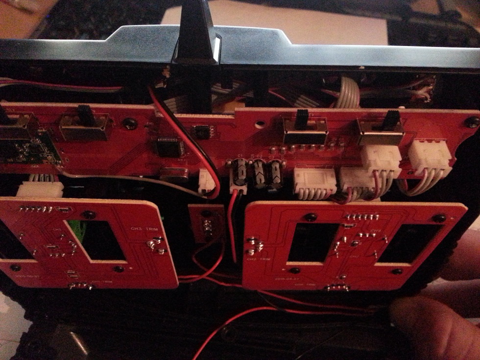 Kannst Du nicht einfach die Drähte von den Knüppelpotis weg mit den Augen verfolgen? Die führen Dich doch genau zum passenden Stecker......... -- Viele Grüße