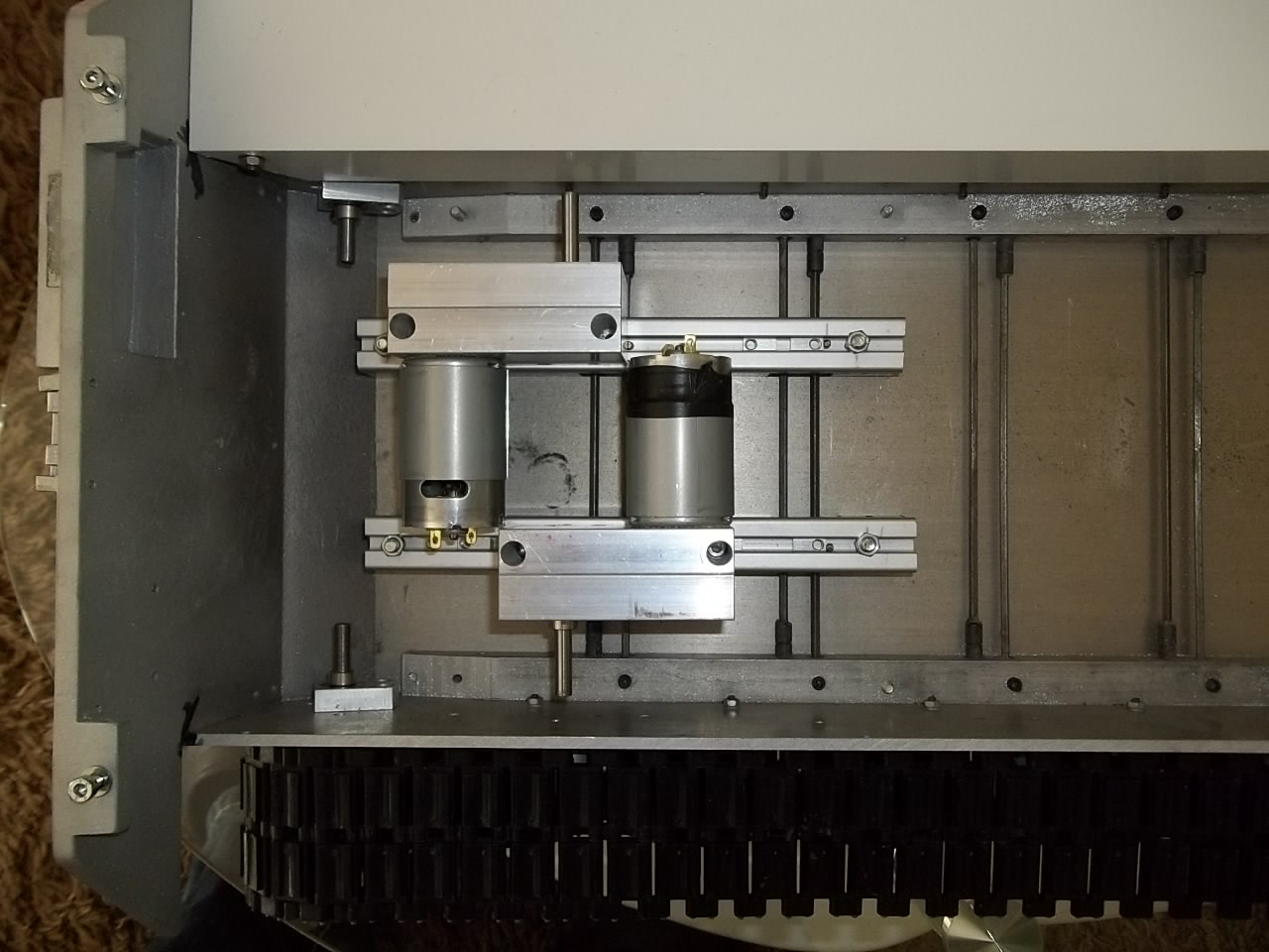 Hi so jetzt sind Motoren und Getriebe eingebaut .Die Zahnriemen und Zahnriemen-Scheiben kommen noch.