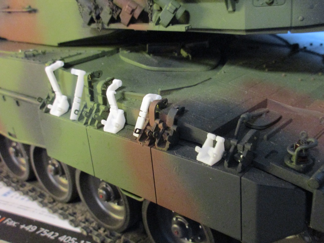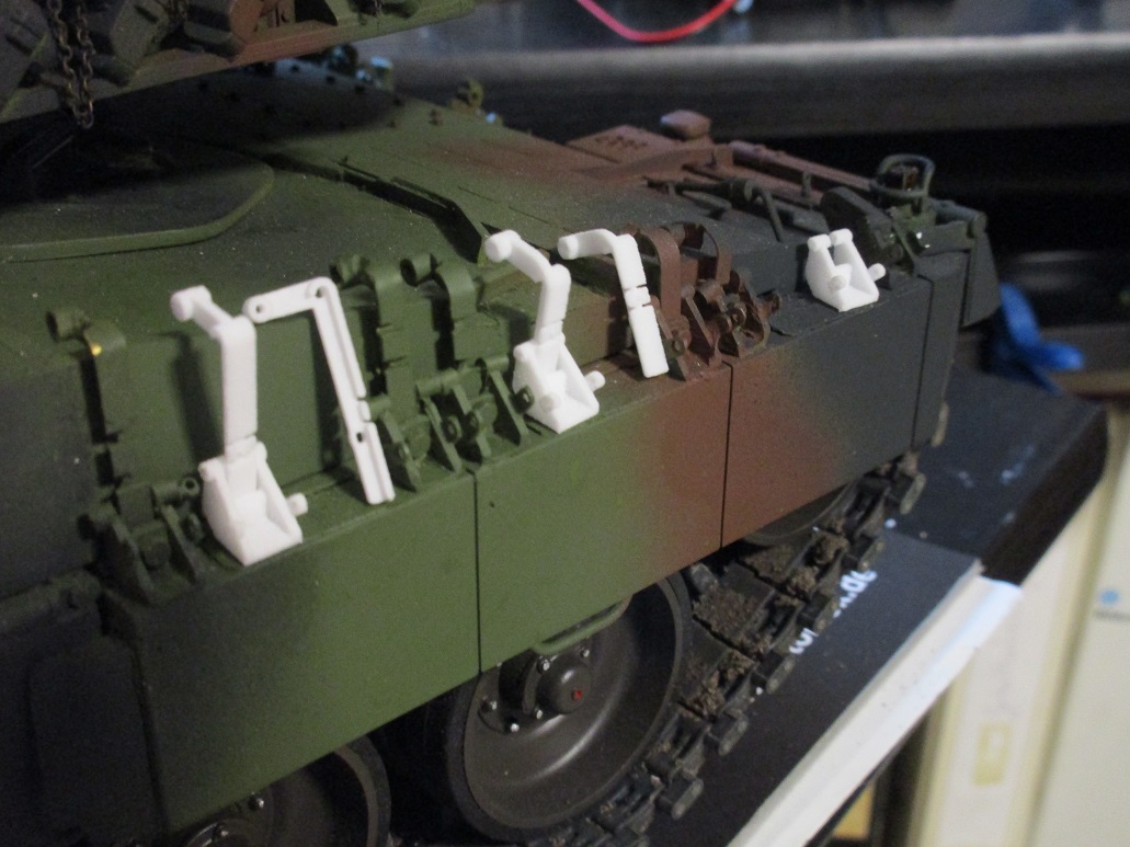 Zum einen Biber Heckträger "am Modell" und die Schürzenhalter Leo2A4.