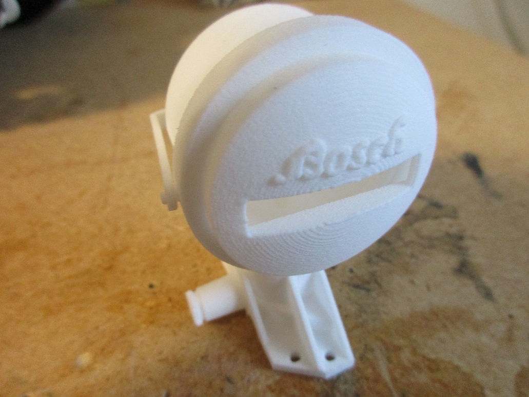 Der Scheinwerfer ist konstruiert, das "ätzendste" war die Schrift des "Bosch" Schriftzuges. Mangels fehlender Schriftart Buchstabe für Buchstabe selbst erarbeitet!